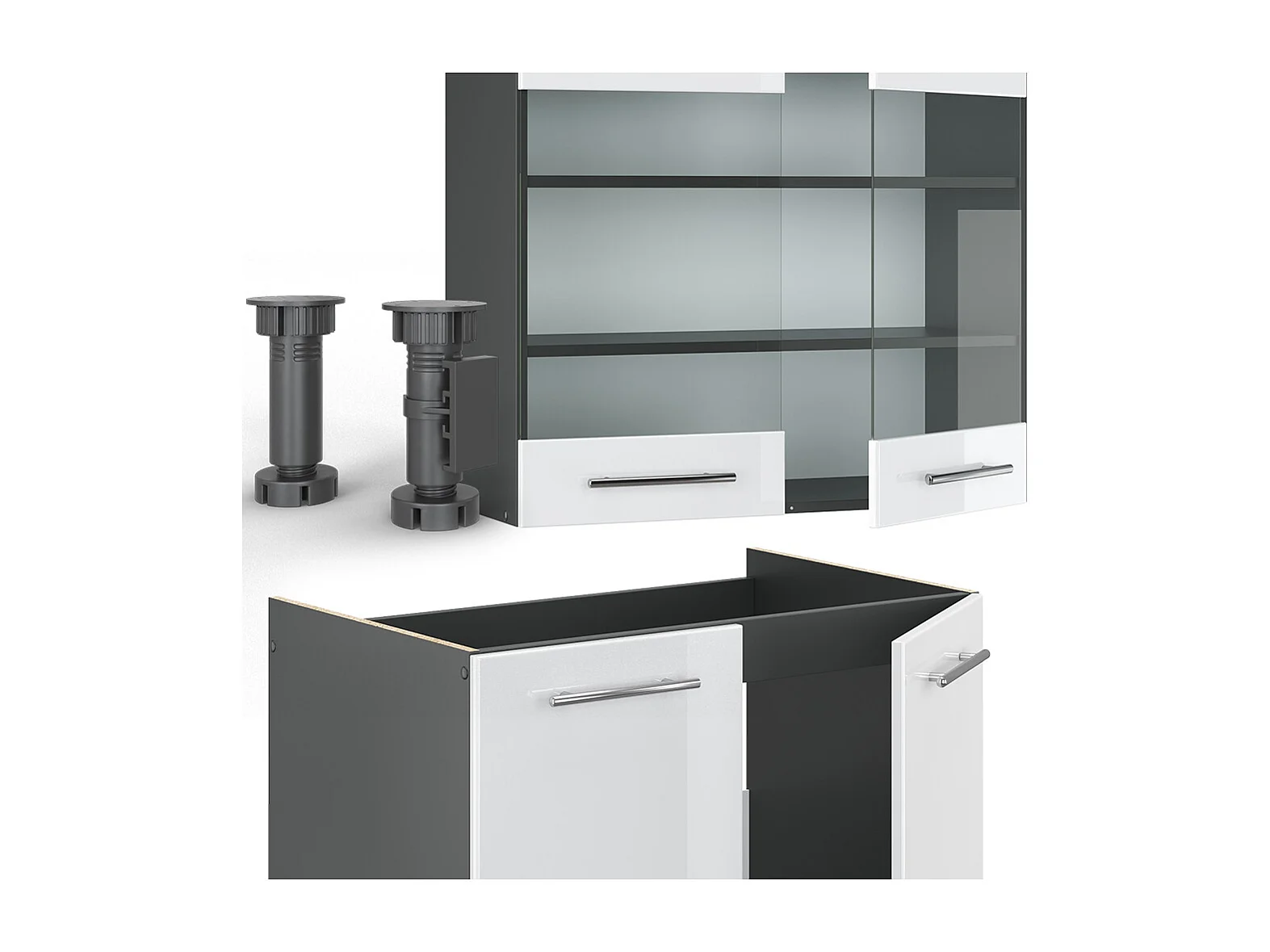 Küchenzeile weiß hochglanz/anthrazit 235x60x81.6 fame-line
