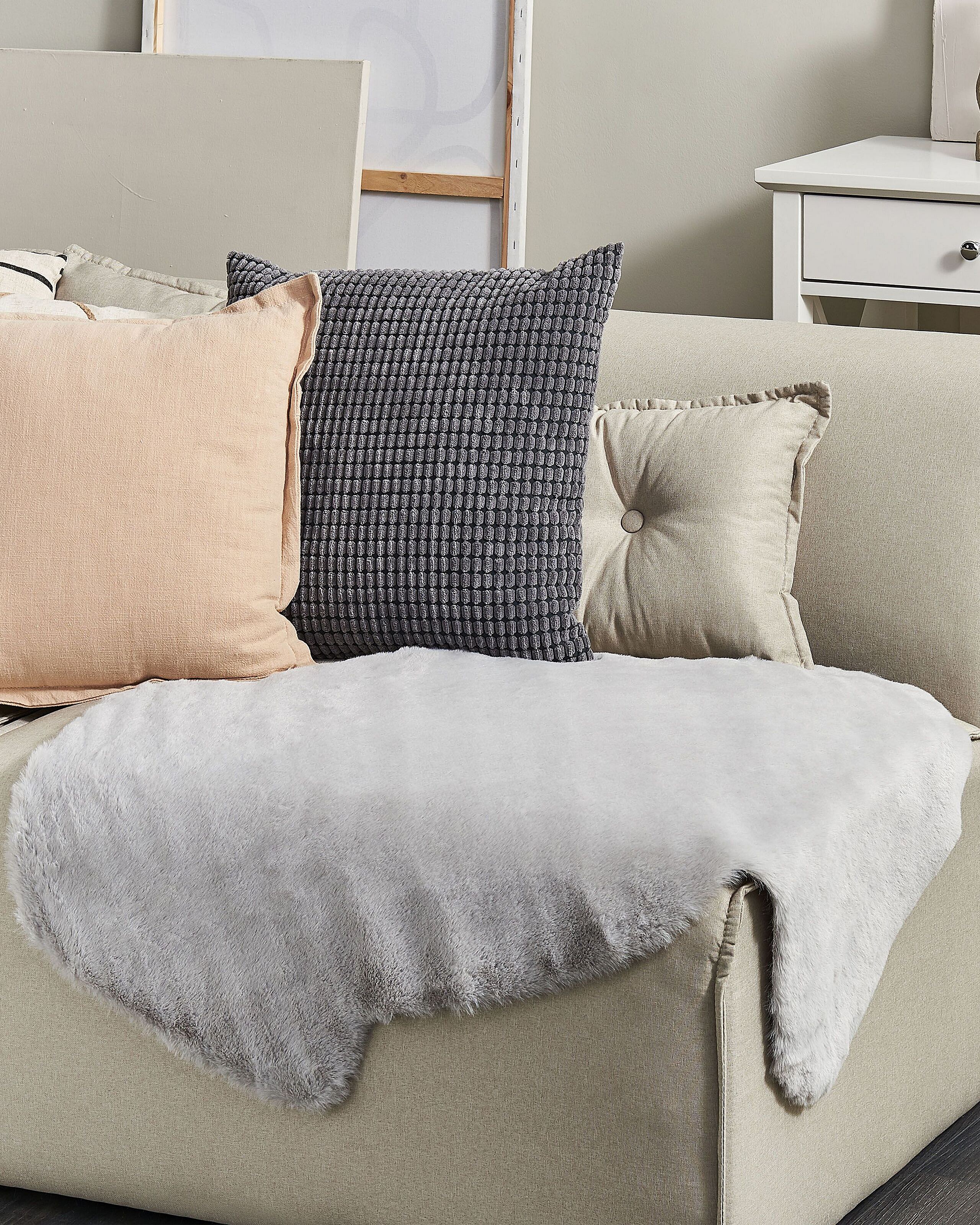 Kunstfell Teppich Kaninchen grau Überwurf Webpelz Fellform 60 x 90 cm Undara