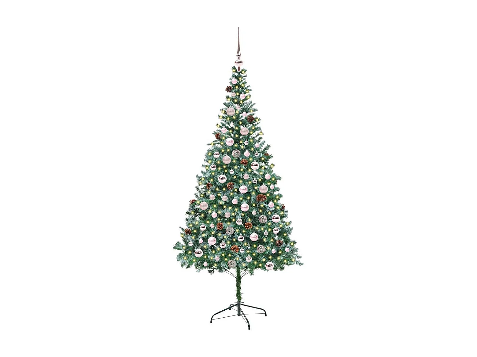 Beleuchteter künstlicher Weihnachtsbaum mit grünen Girlanden 210cm