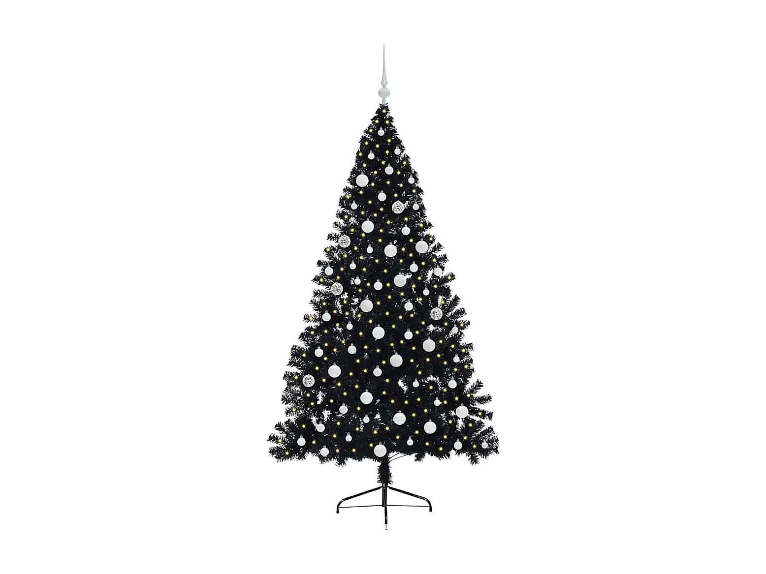 Künstlicher Weihnachtsbaum mit Beleuchtung, Schwarz, 180 cm, PVC