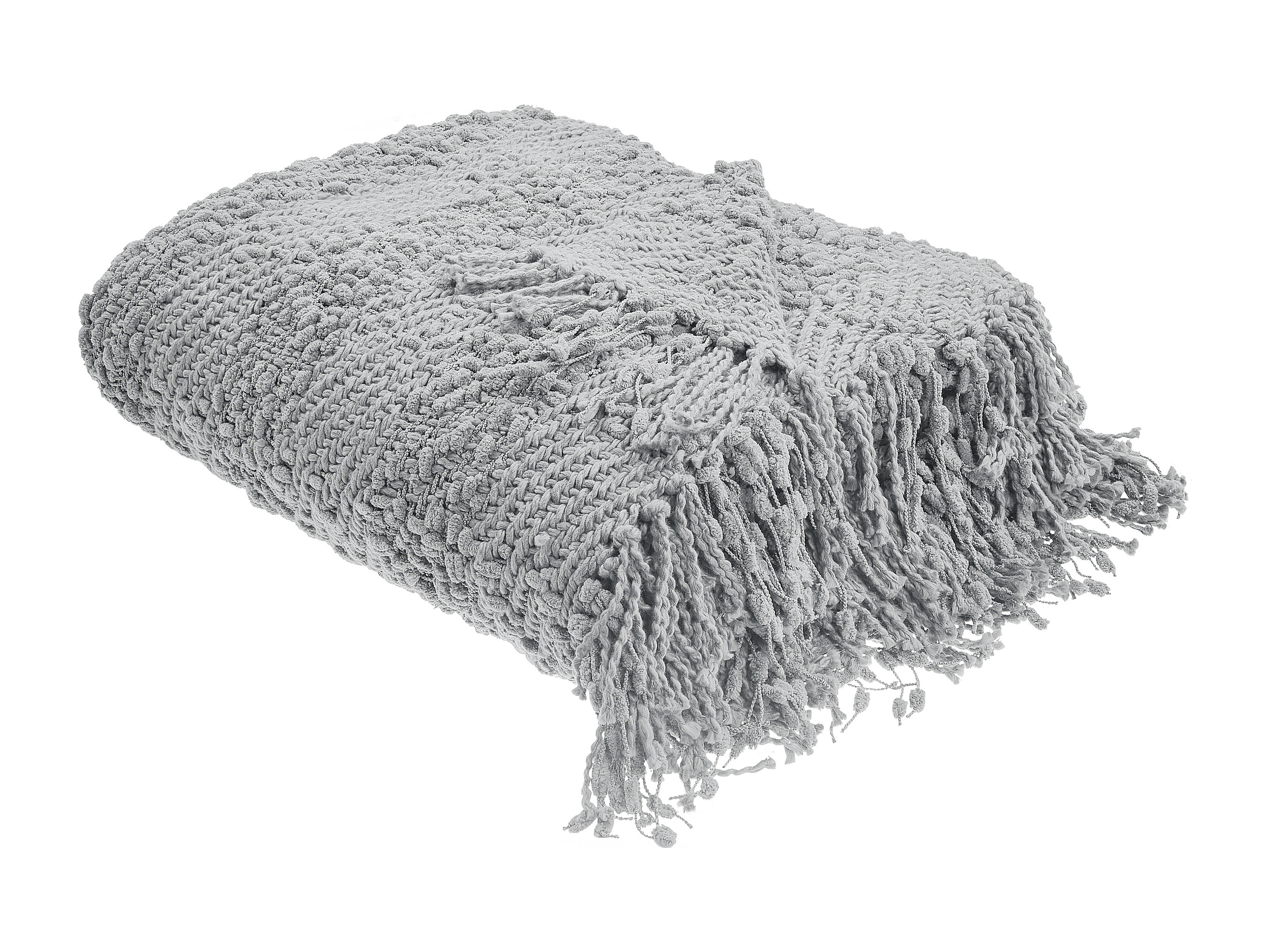 Decke Baumwolle gestrickt grau mit Quasten 150 x 200 cm Kuscheldecke Vella