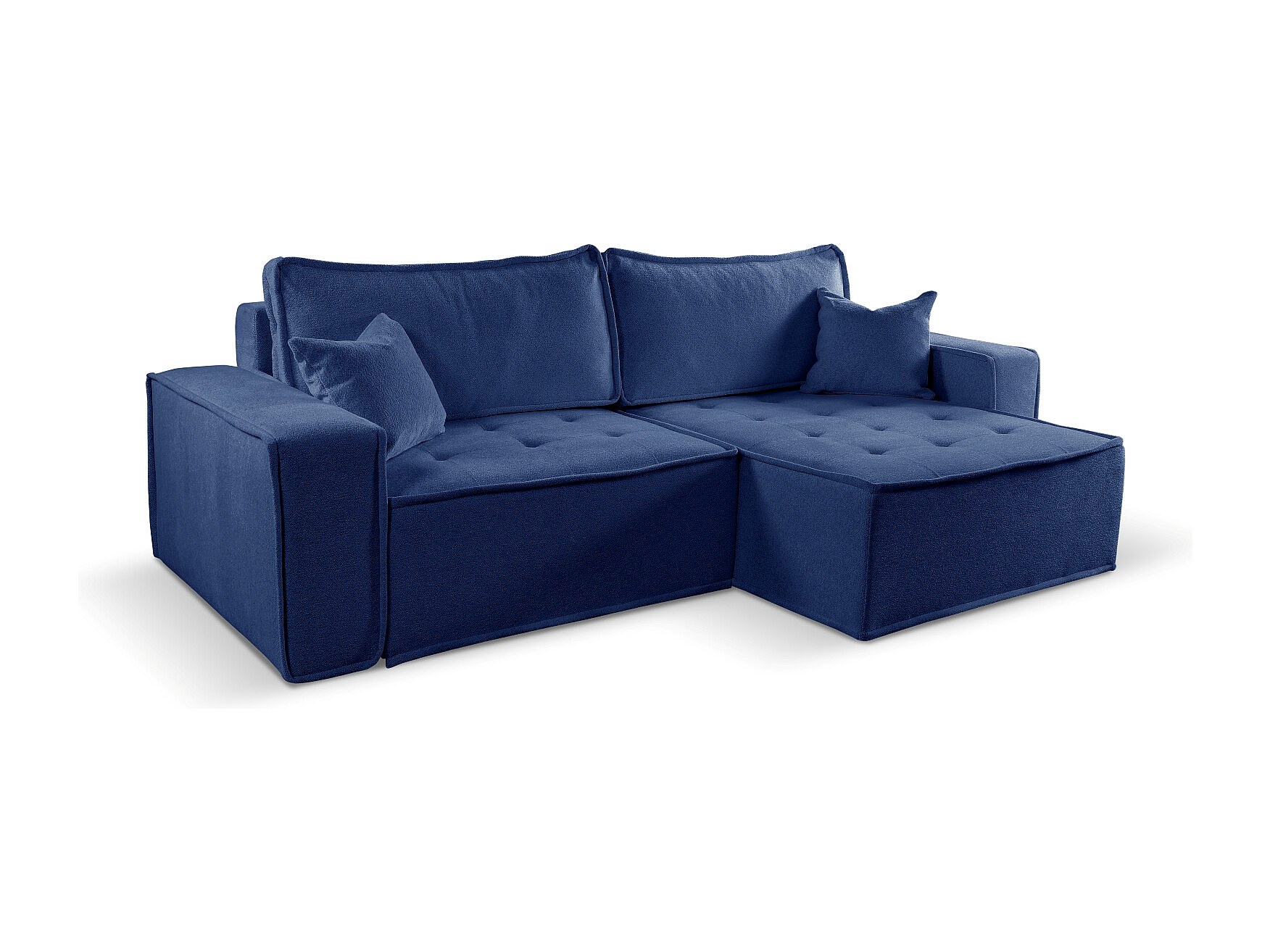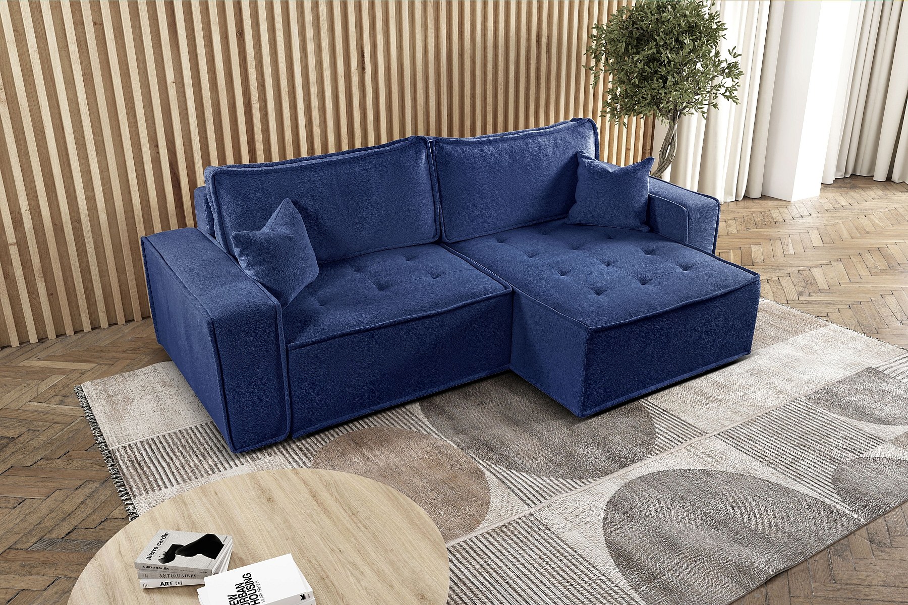 L-förmiges Bohoo-Ecksofa mit Schlaffunktion, Stoff Raven, Blau, Rechts