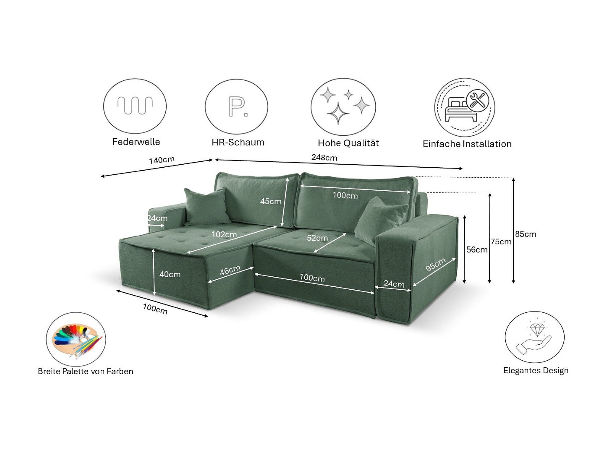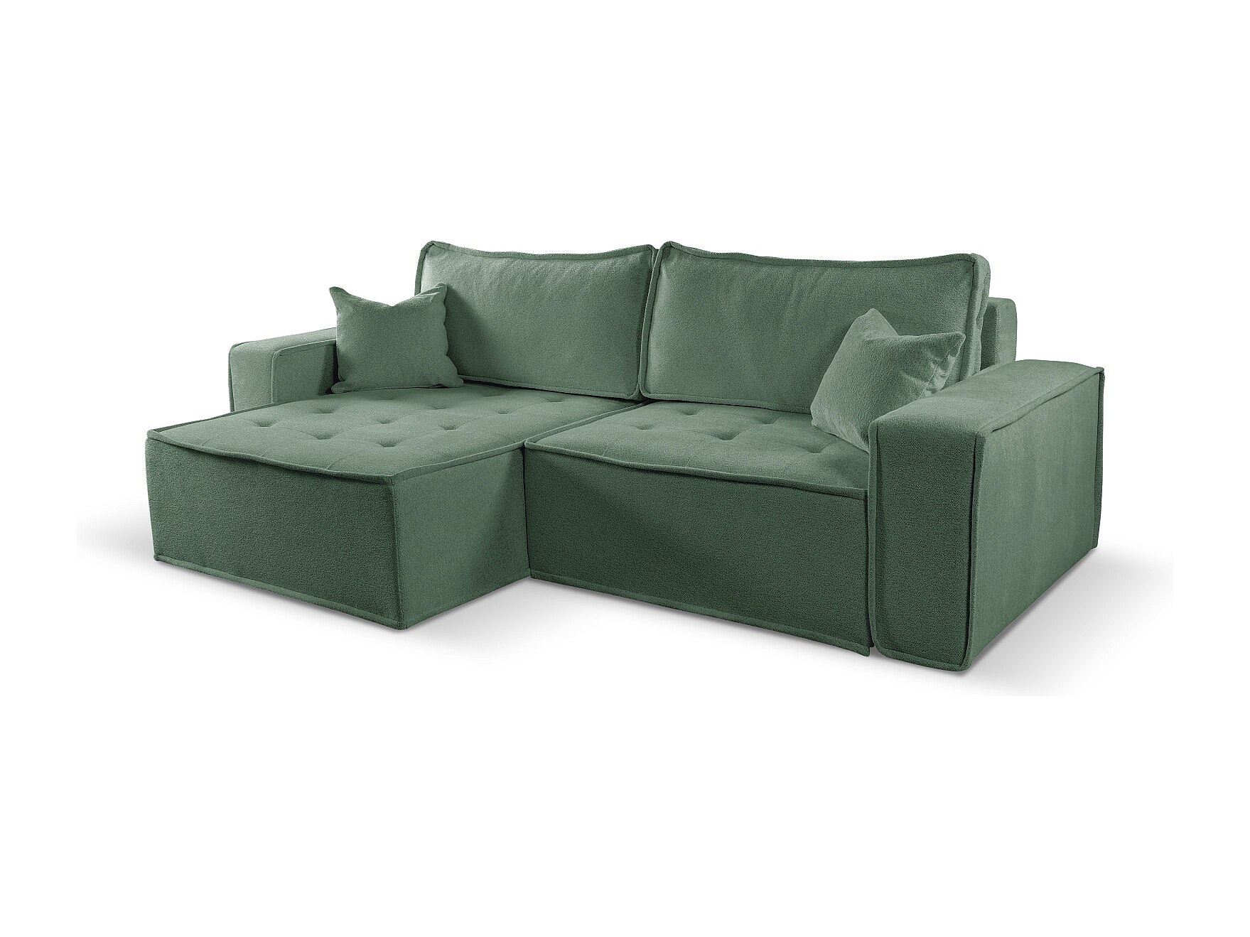 L-förmiges Bohoo-Ecksofa mit Schlaffunktion, Stoff Raven, Hellgrün, Links