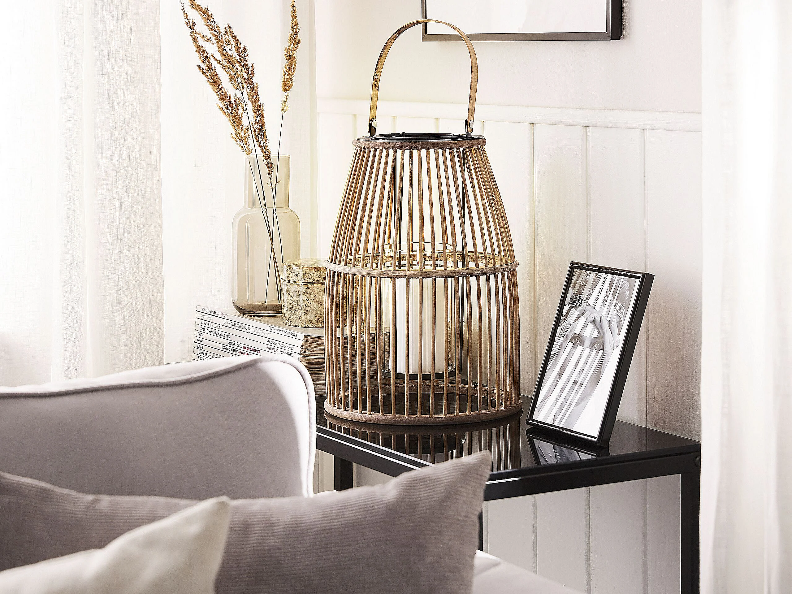 Laterne Holz beige mit Henkel Landhaus Stil Hoste