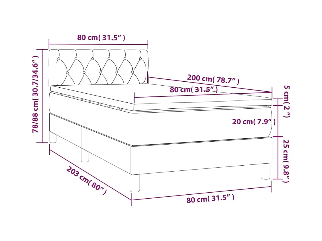Lattenrost mit LED-Matratze Taupe 80x200 cm Stoff
