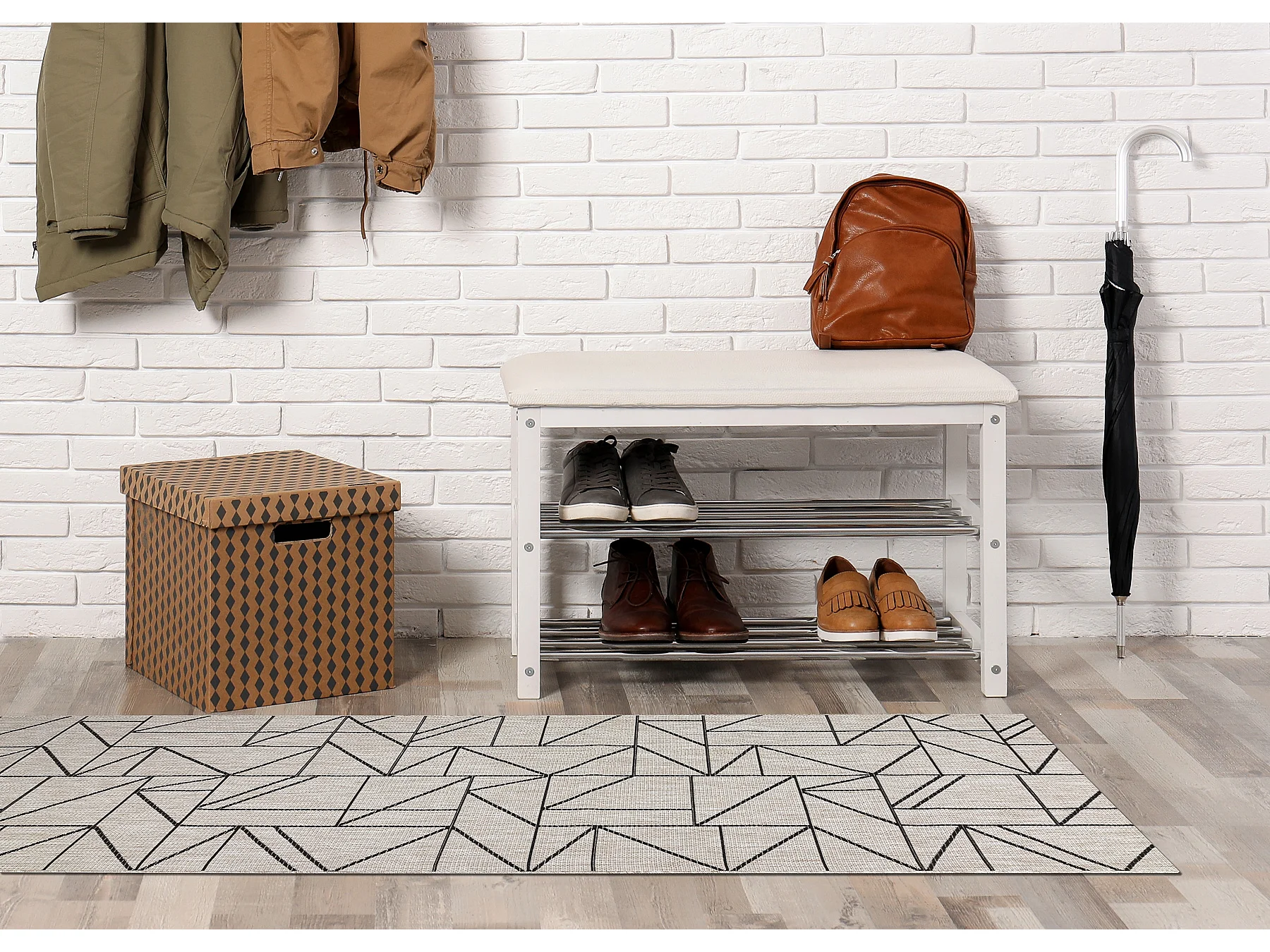 Läufer SIZAL FLOORLUX Modell 20605 DREIECKE, GEOMETRISCH silber / sch 100x400 cm