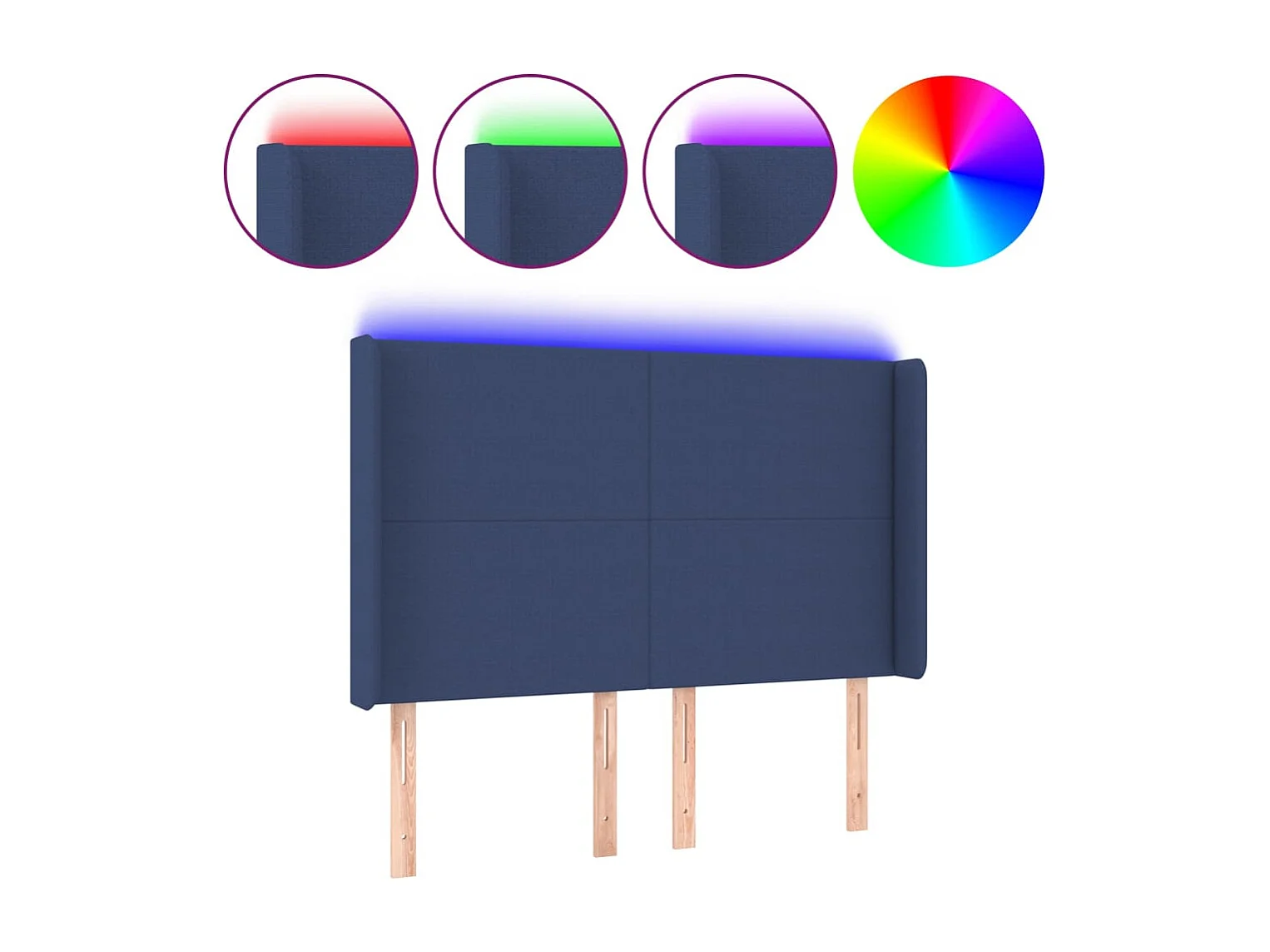 LED Kopfteil Blau 147x16x118/128 cm Stoff