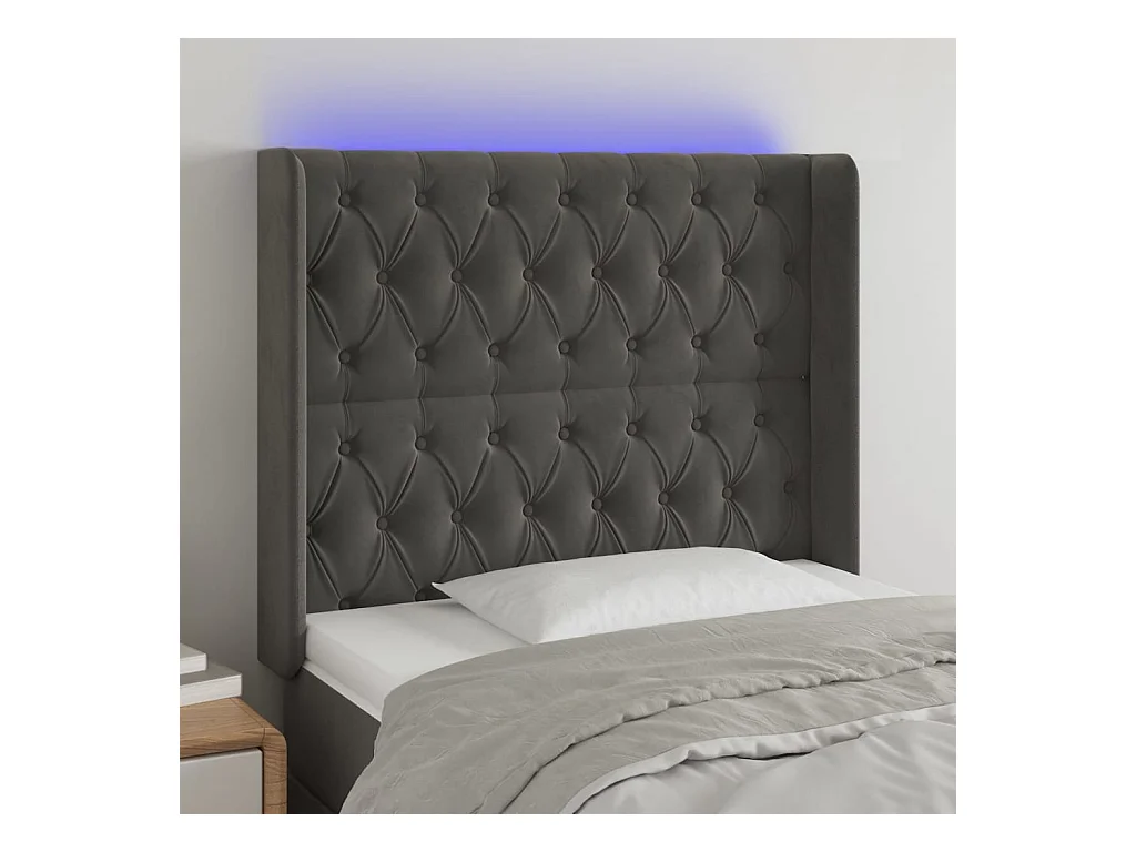 LED-Kopfteil Dunkelgrau 103x16x118/128 cm Samt