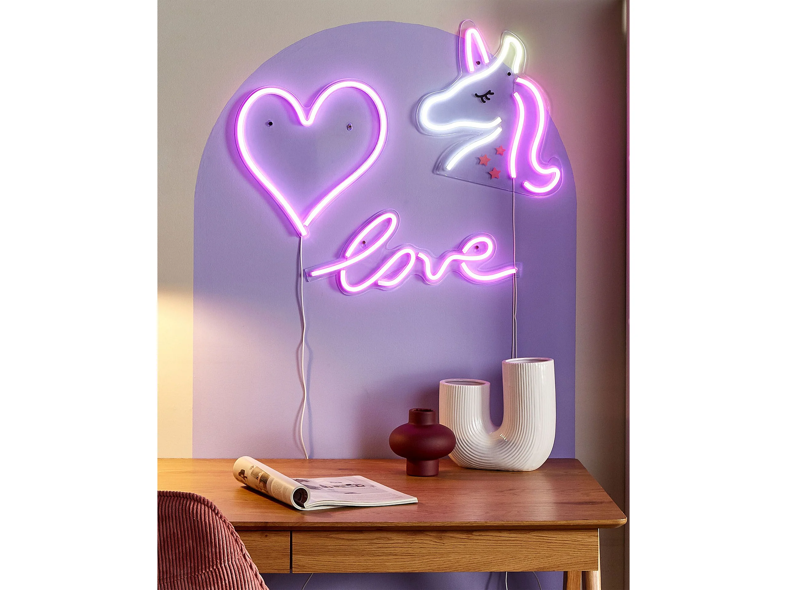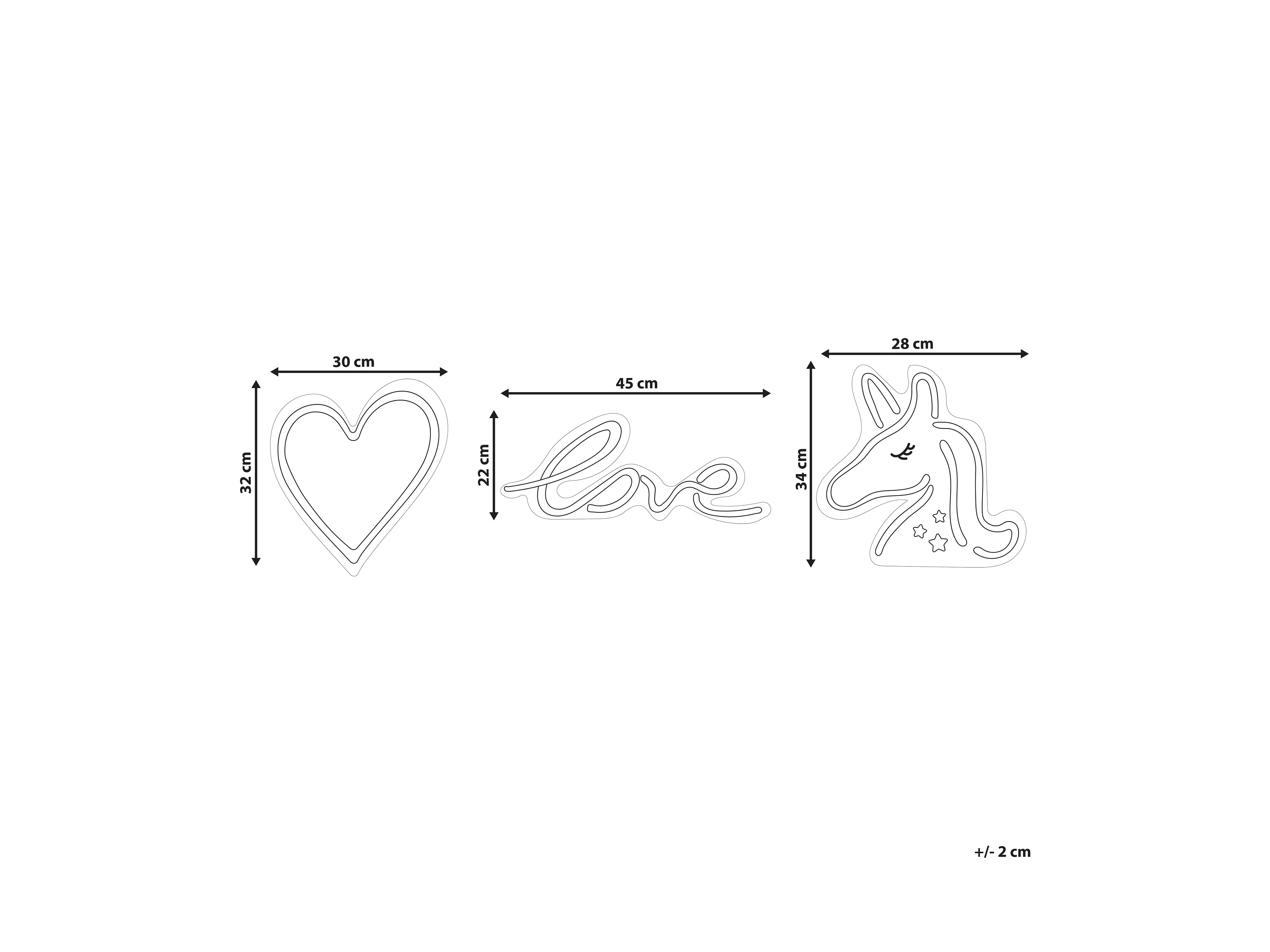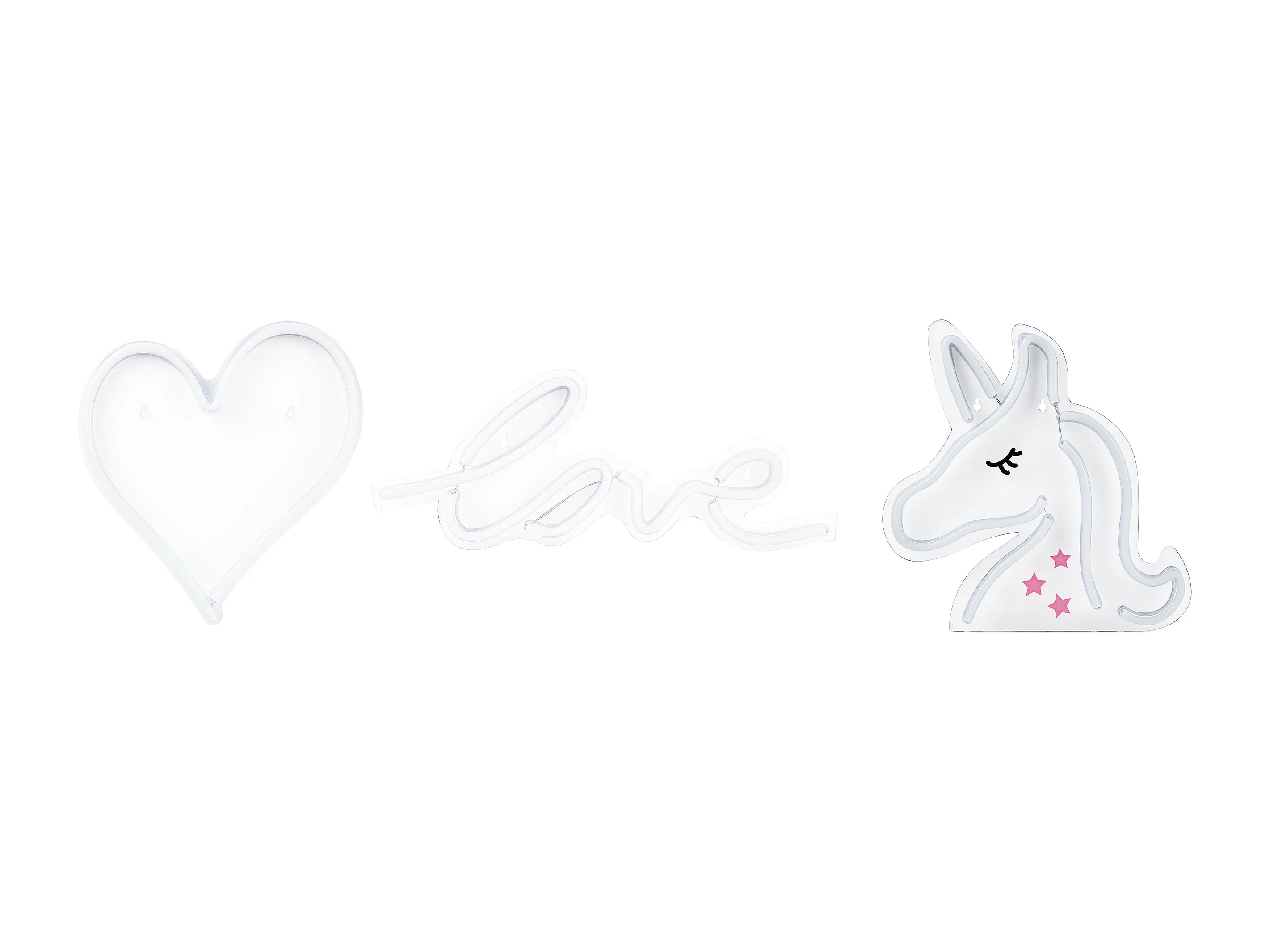 LED Neon Licht Wanddeko 3er Set mit Kabel Herz Einhorn Love Susie