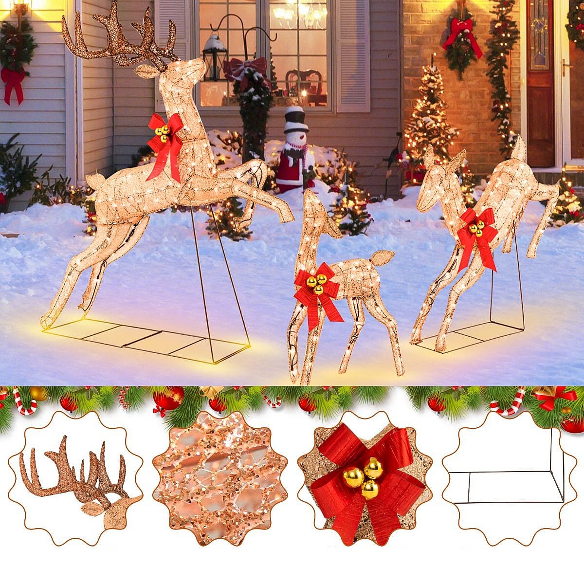 3-Teiliges Beleuchtetes Weihnachtsrentier Weihnachtsrentier-Familienset