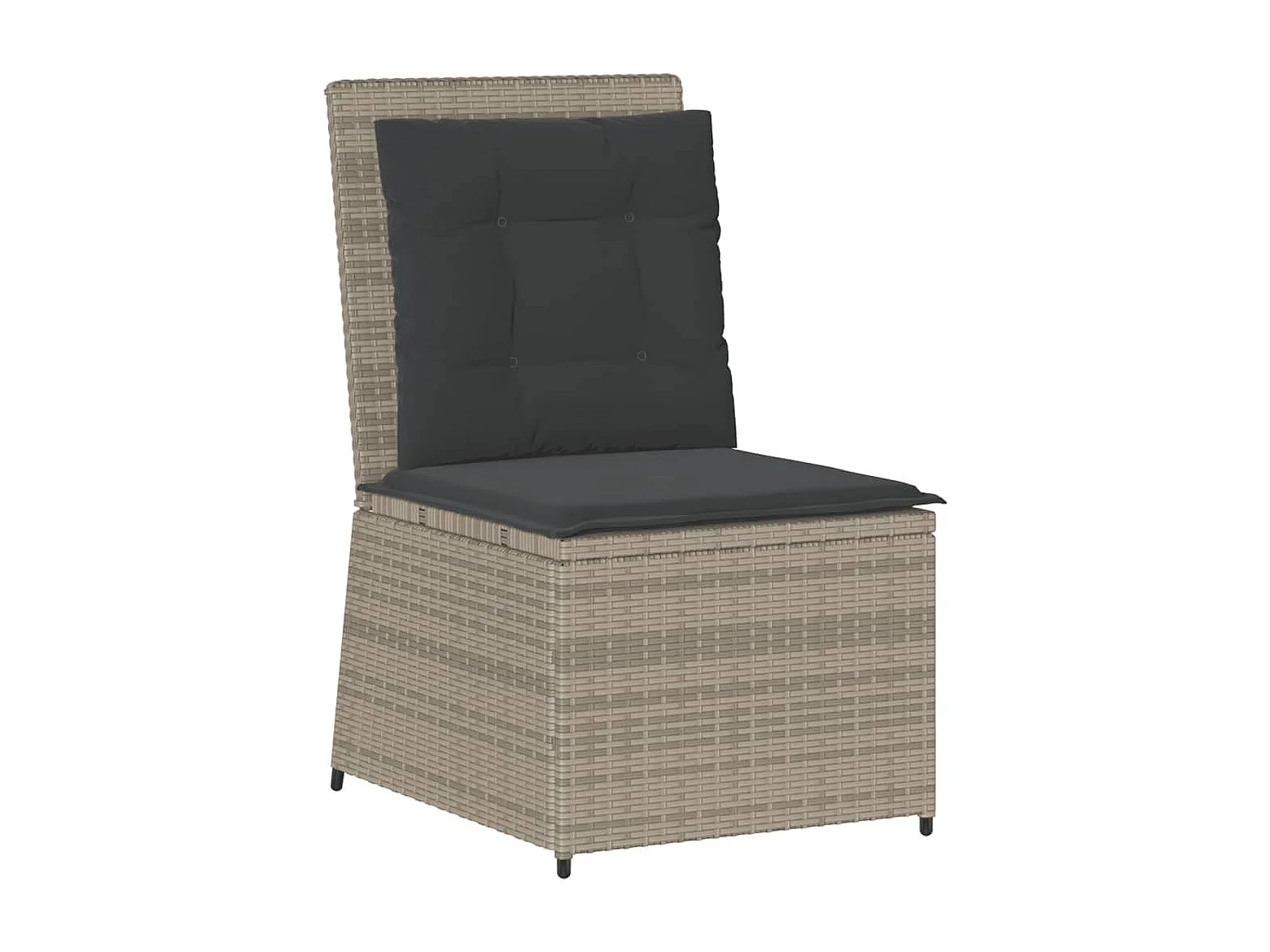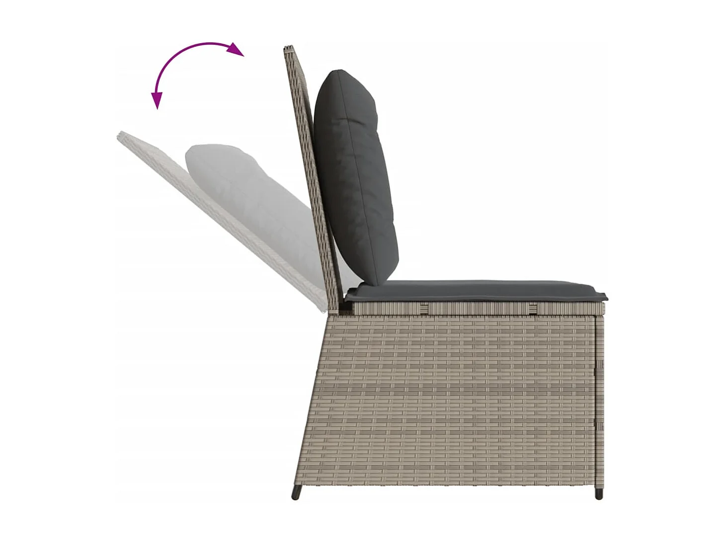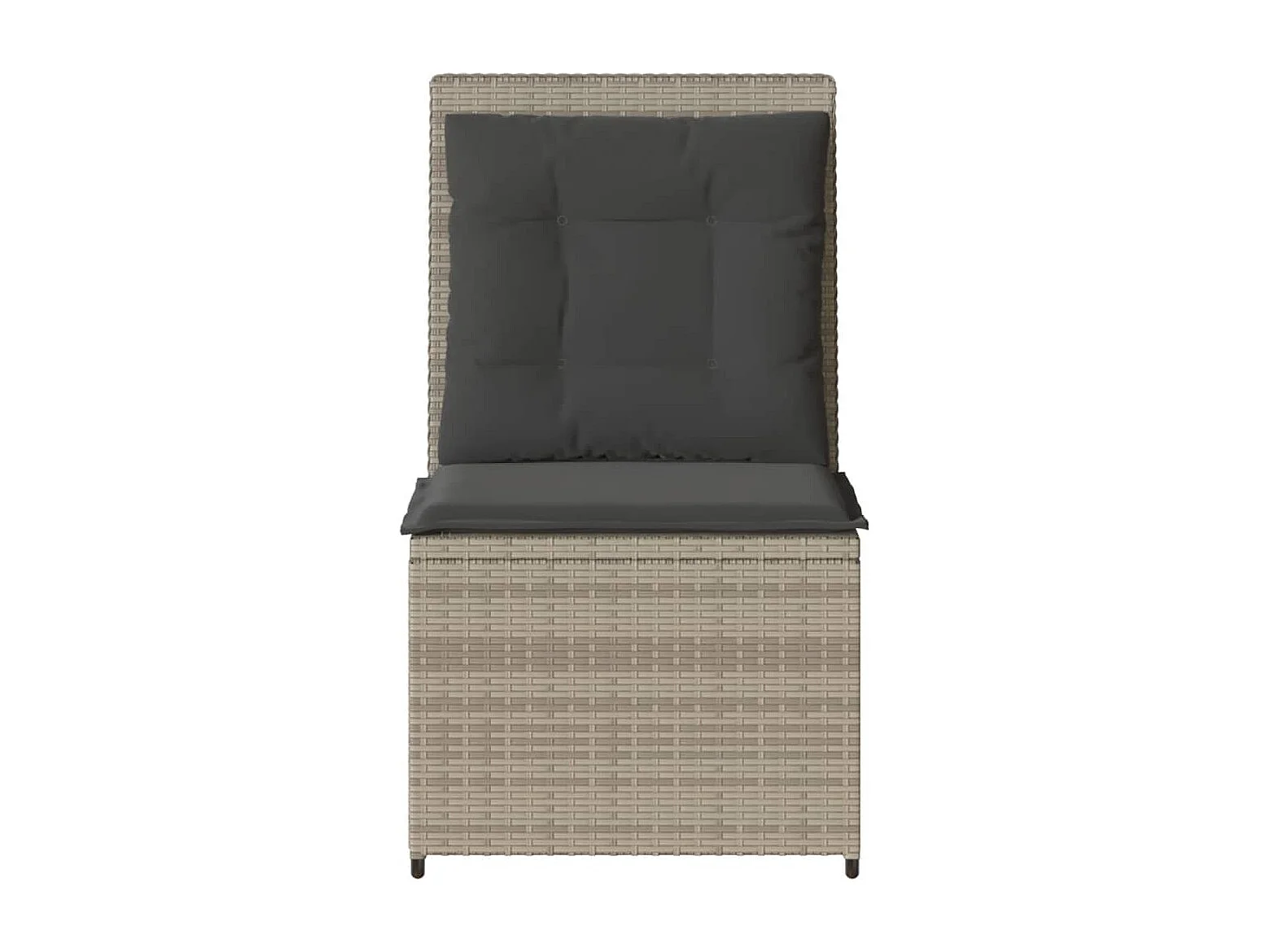 Liegendes Gartensofa mit hellgrauen Kissen aus geflochtenem Kunstharz