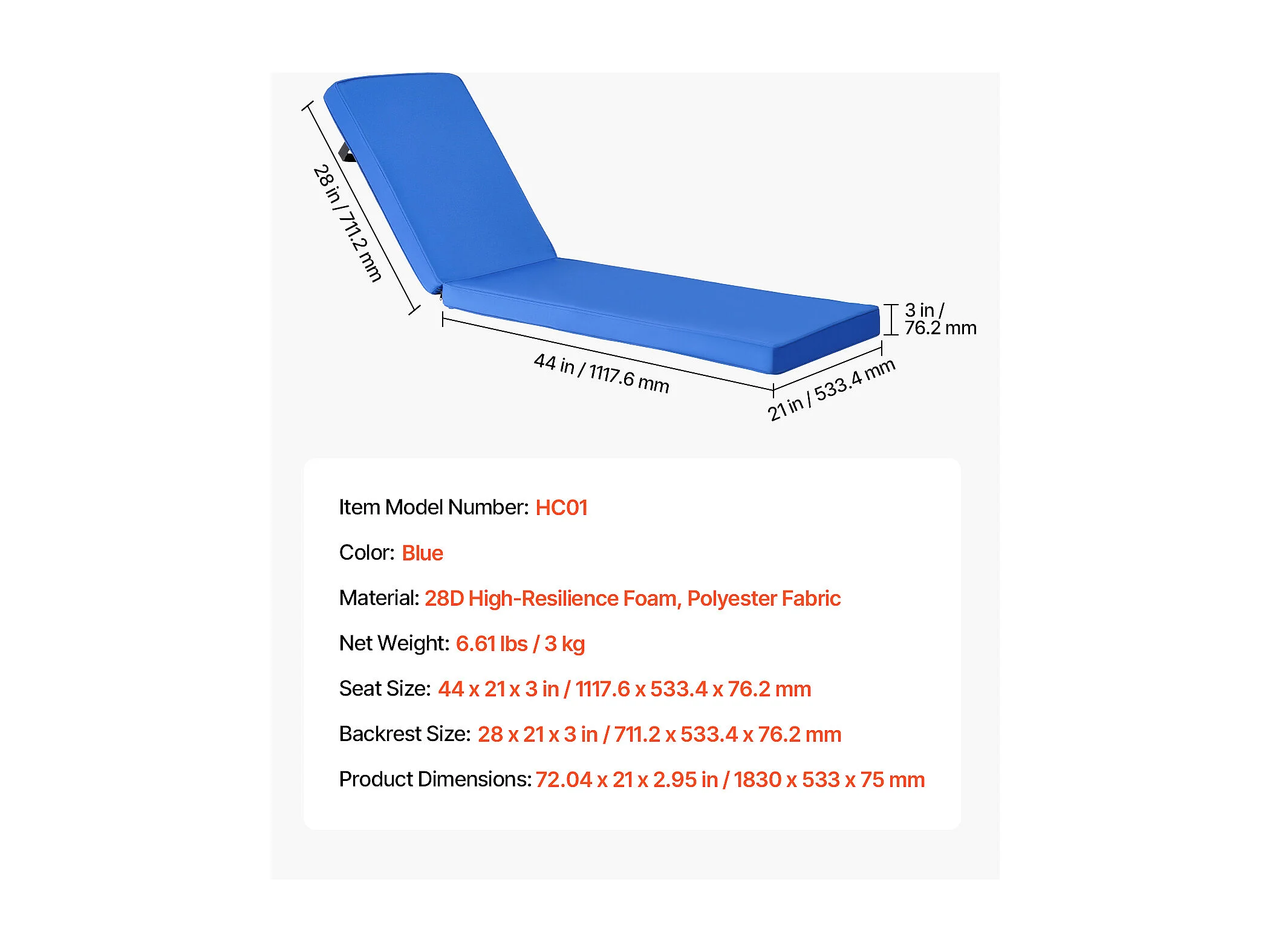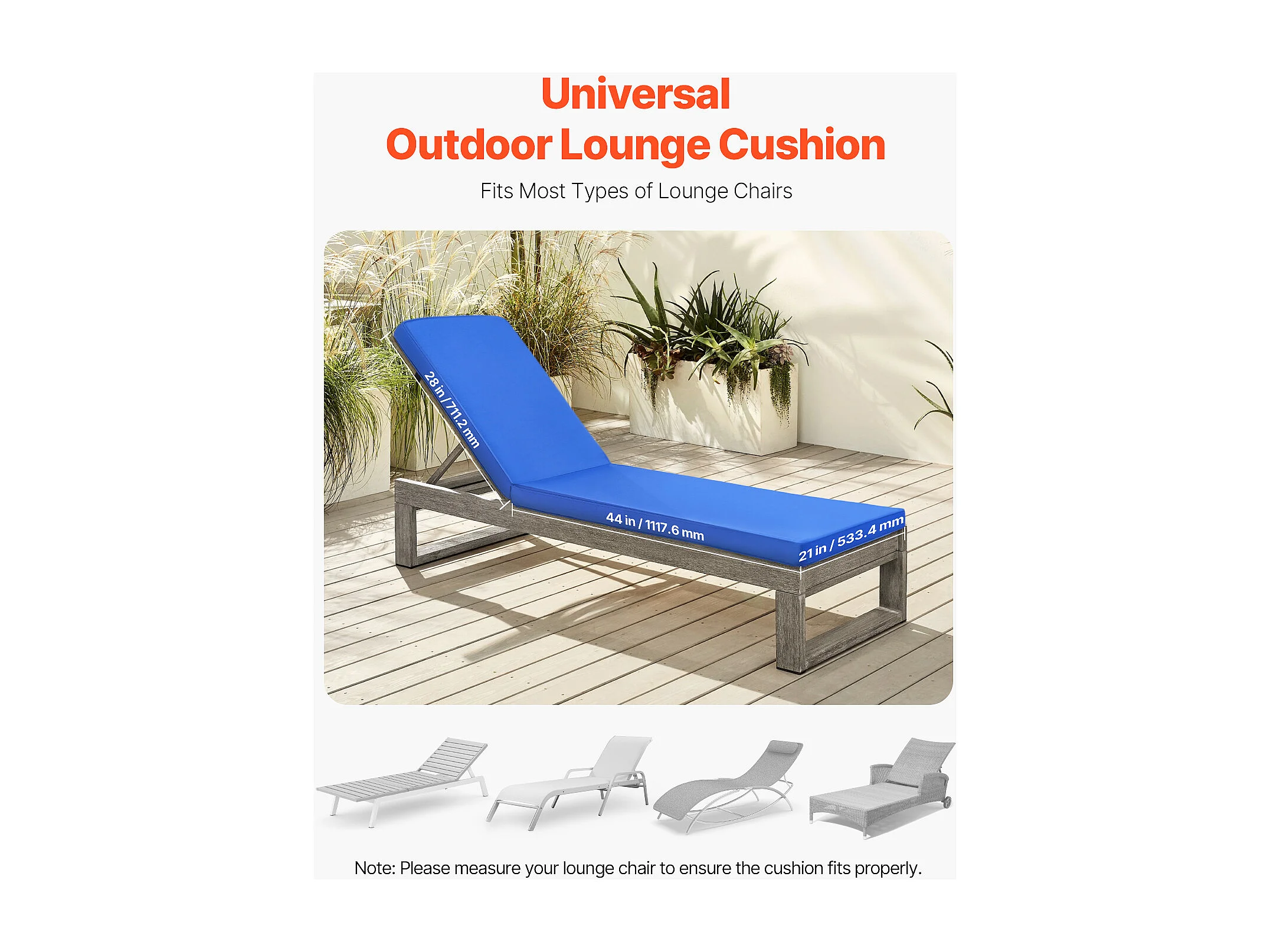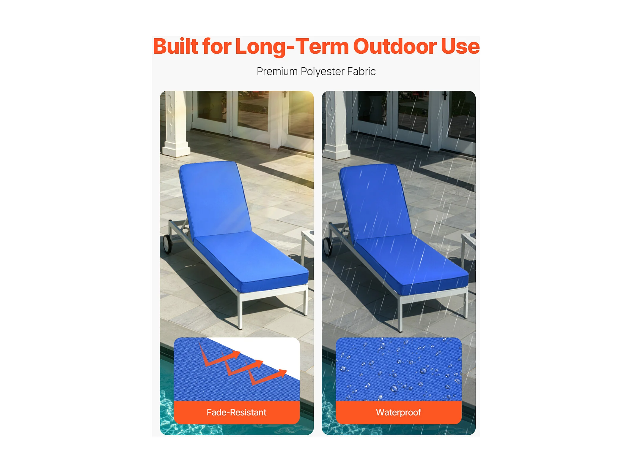 Liegestuhl-Kissen SucceBuy, 183x53,3 cm, Garten-Liegestuhl-Kissen, Wasserdicht und Dick, Beständig gegen Verblassen, mit Befestigungsbändern, Blau