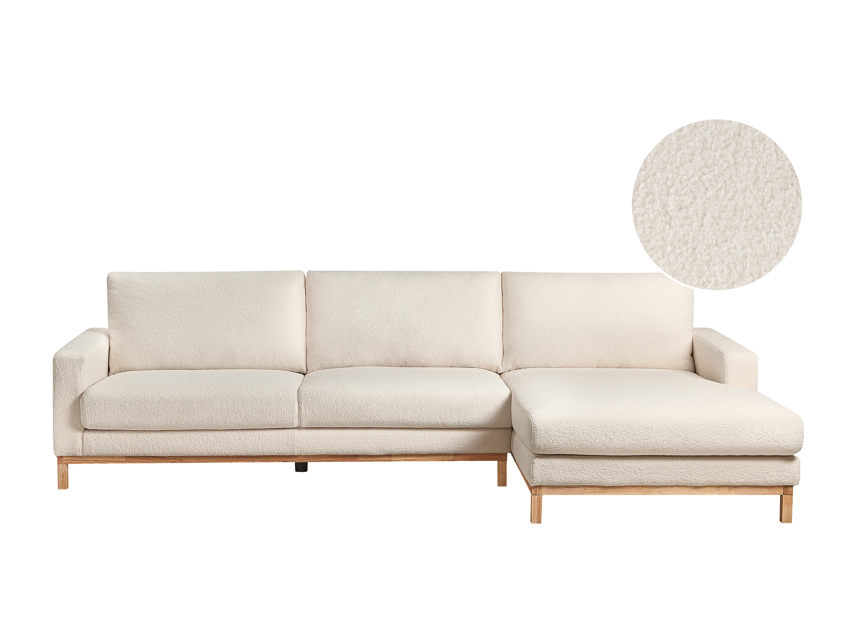 4-Sitzer Ecksofa L-Form Bouclé weiß mit Chaiselongue rechts modern Lungo