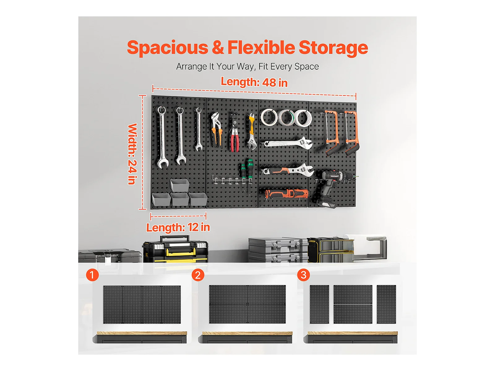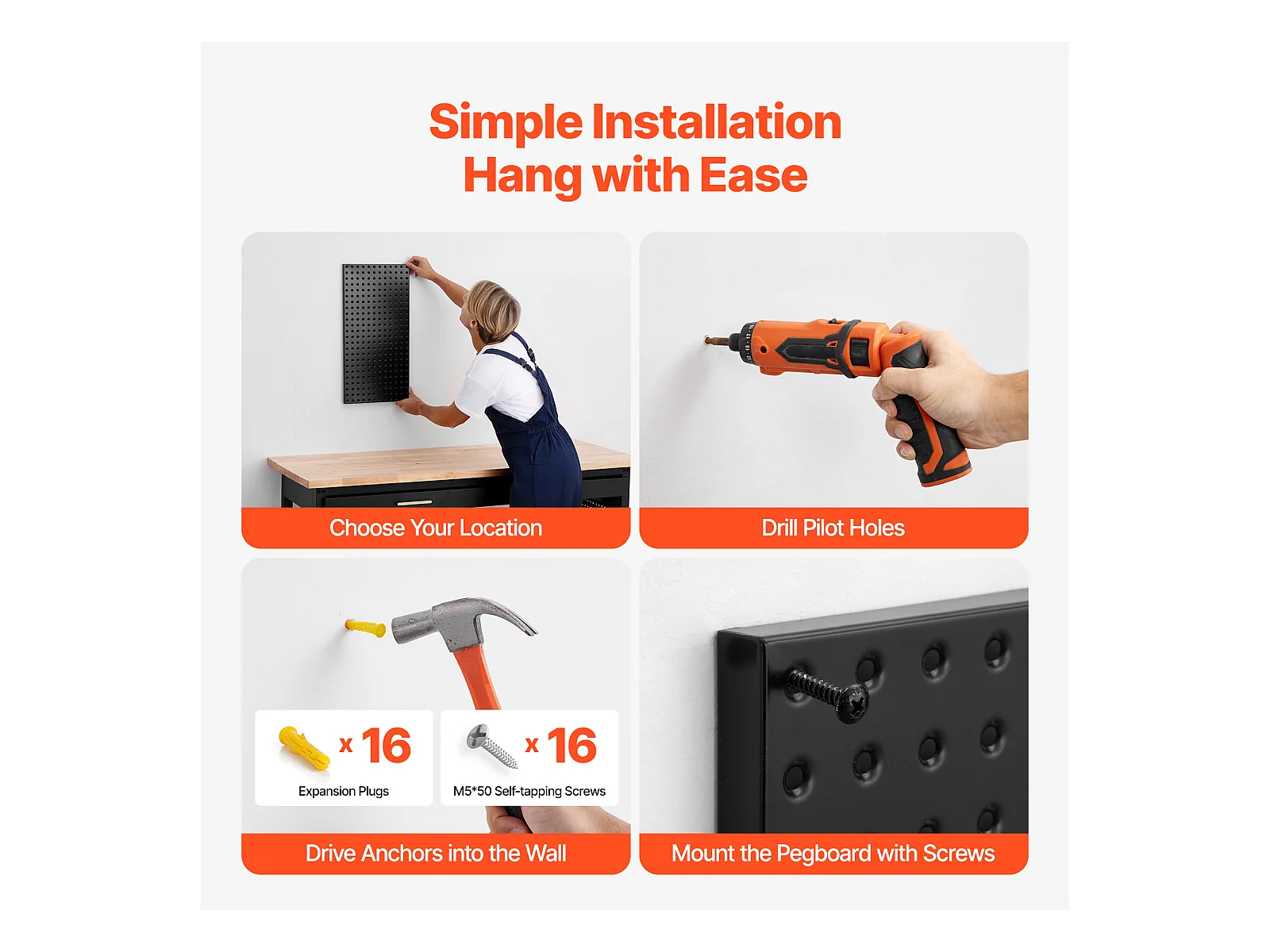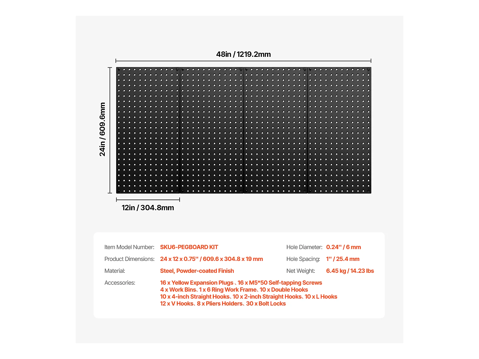 Lochbleche aus Metall SucceBuy, 4 Bleche, 609,6 x 304,8 mm, für Werkzeuge in der Garage