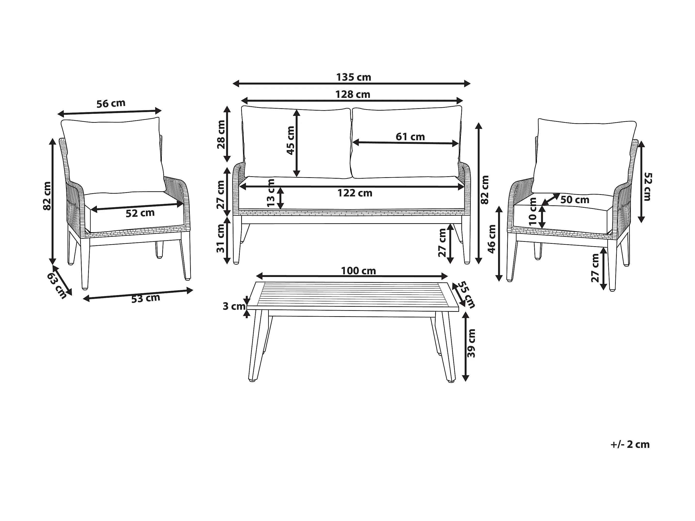 Garten Sitzgruppe 2-Sitzer-Sofa und 2 Sessel