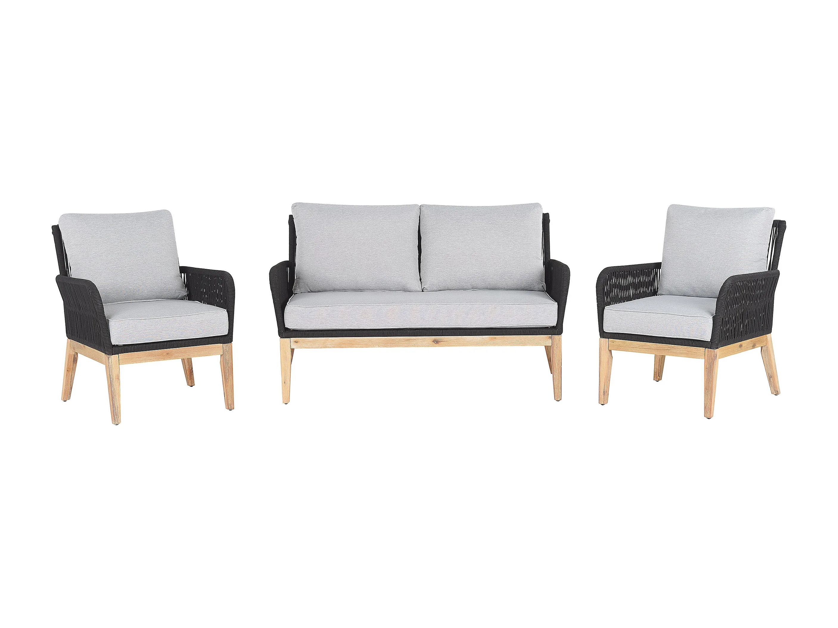 Gartenmöbelset schwarz/hellbraun Sofa mit Kaffeetisch Polsterbezug grau Pienza