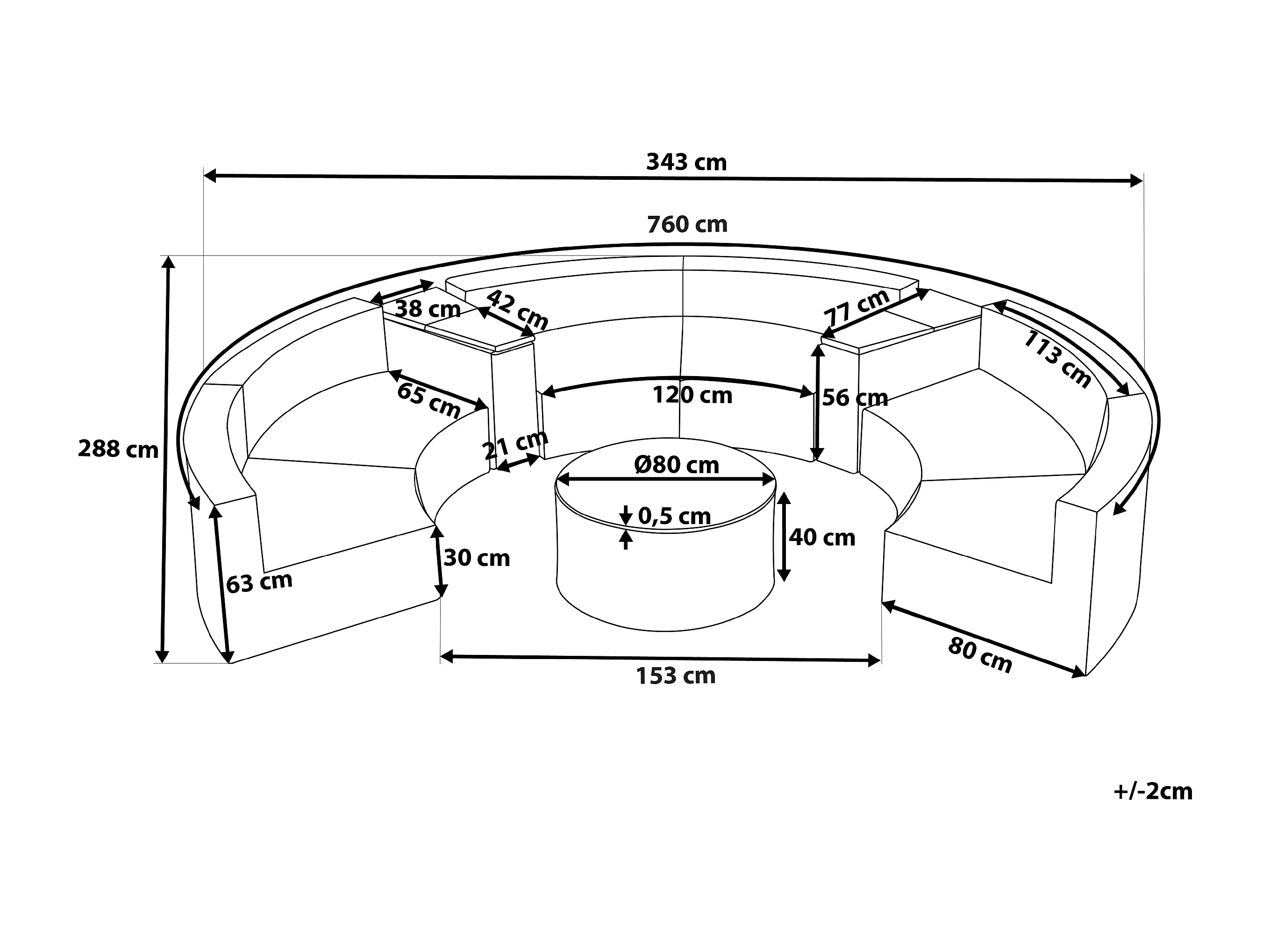 9-Sitzer Lounge Set Rattan braun rund mit Auflagen weiß Couchtisch Severo