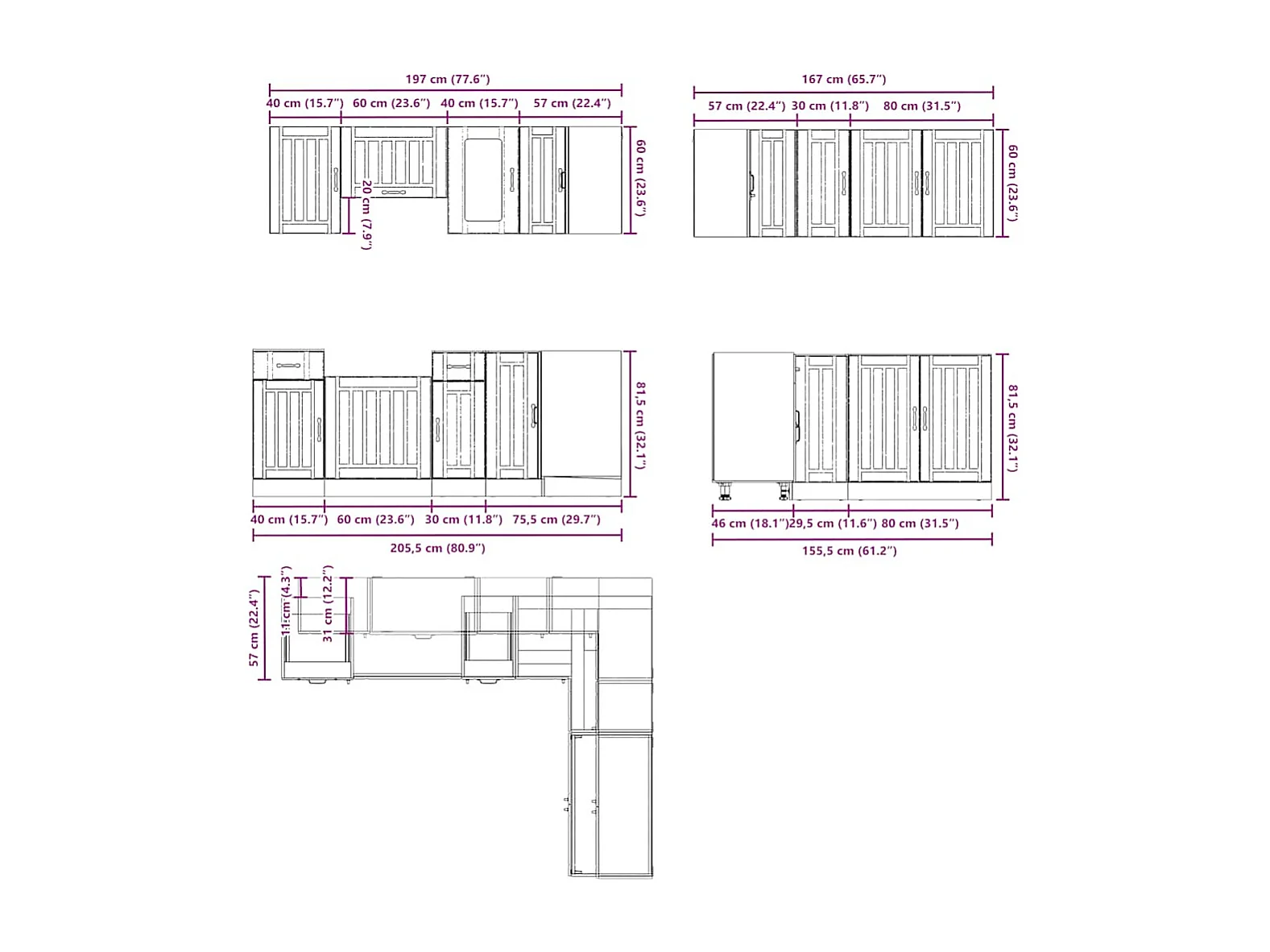 Lucca 11-teiliges Küchenschrank-Set aus Holzwerkstoff