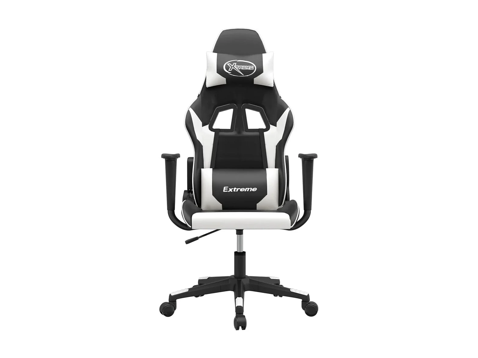 Massage-Gaming-Stuhl aus schwarzem und weißem Kunstleder