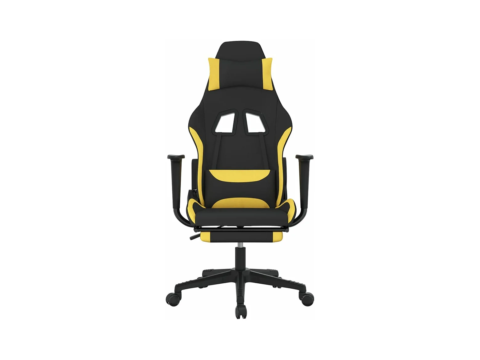 Massage-Gaming-Stuhl mit Fußstütze aus schwarzem und gelbem Stoff