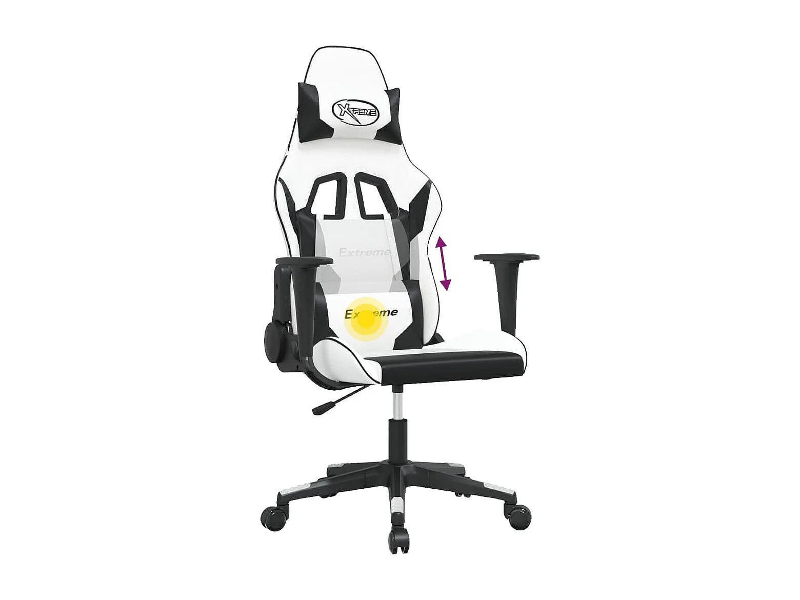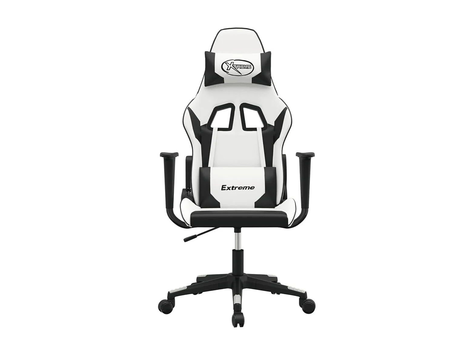 Massage-Gaming-Stuhl. Weißes und schwarzes Kunstleder