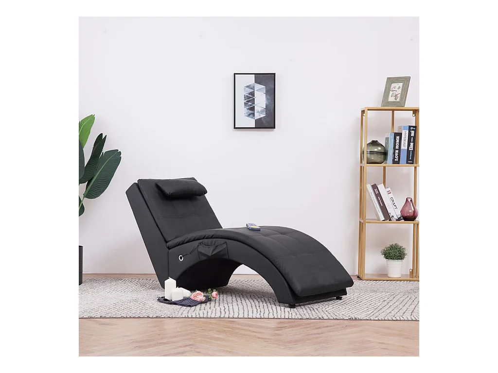 Massageliegestuhl mit Kissen, schwarzes Kunstleder