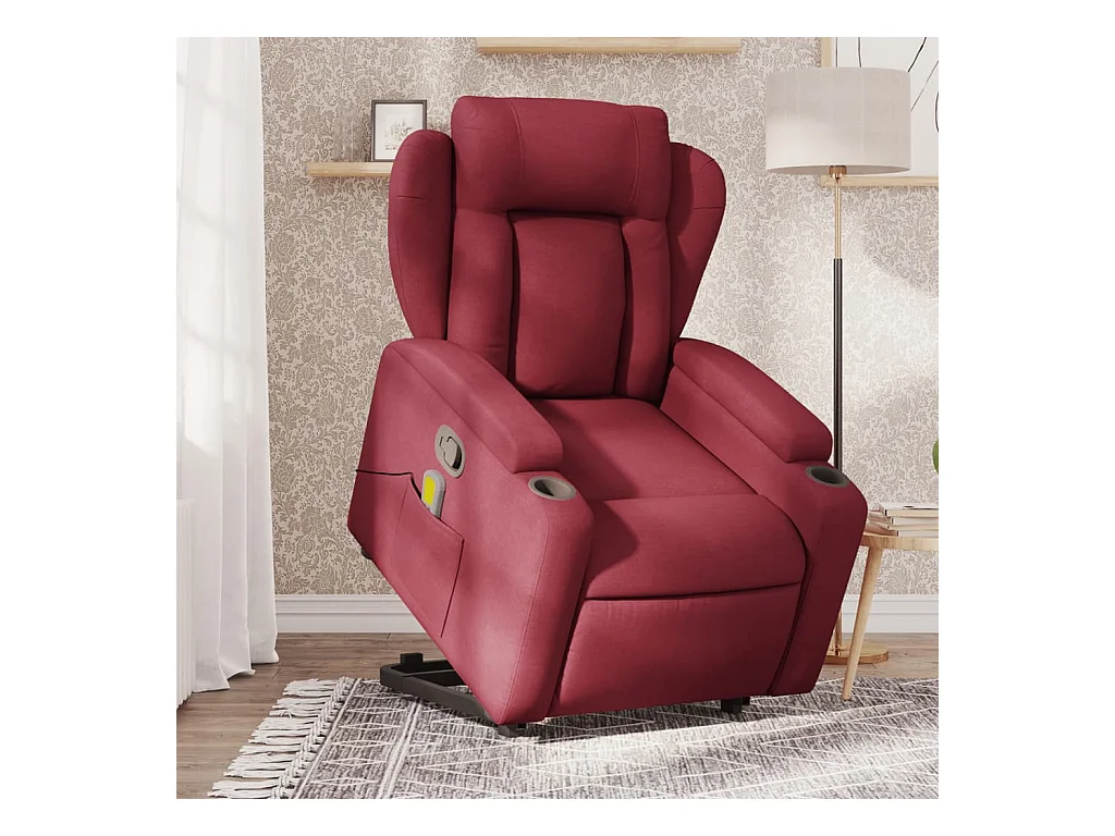 Elektrischer Massagesessel mit Aufstehhilfe Weinrot Stoff