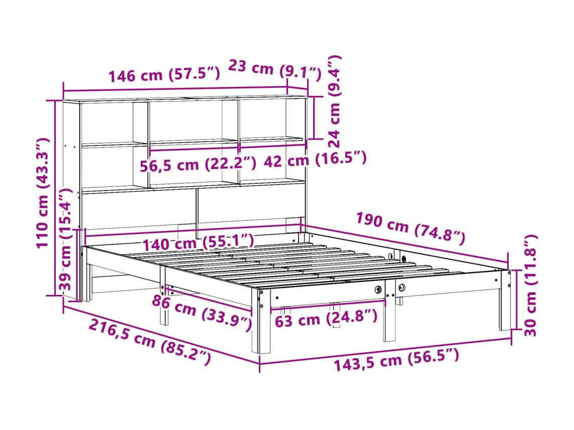 Massivholzbett mit Regal ohne Matratze 140x190 cm Kiefer