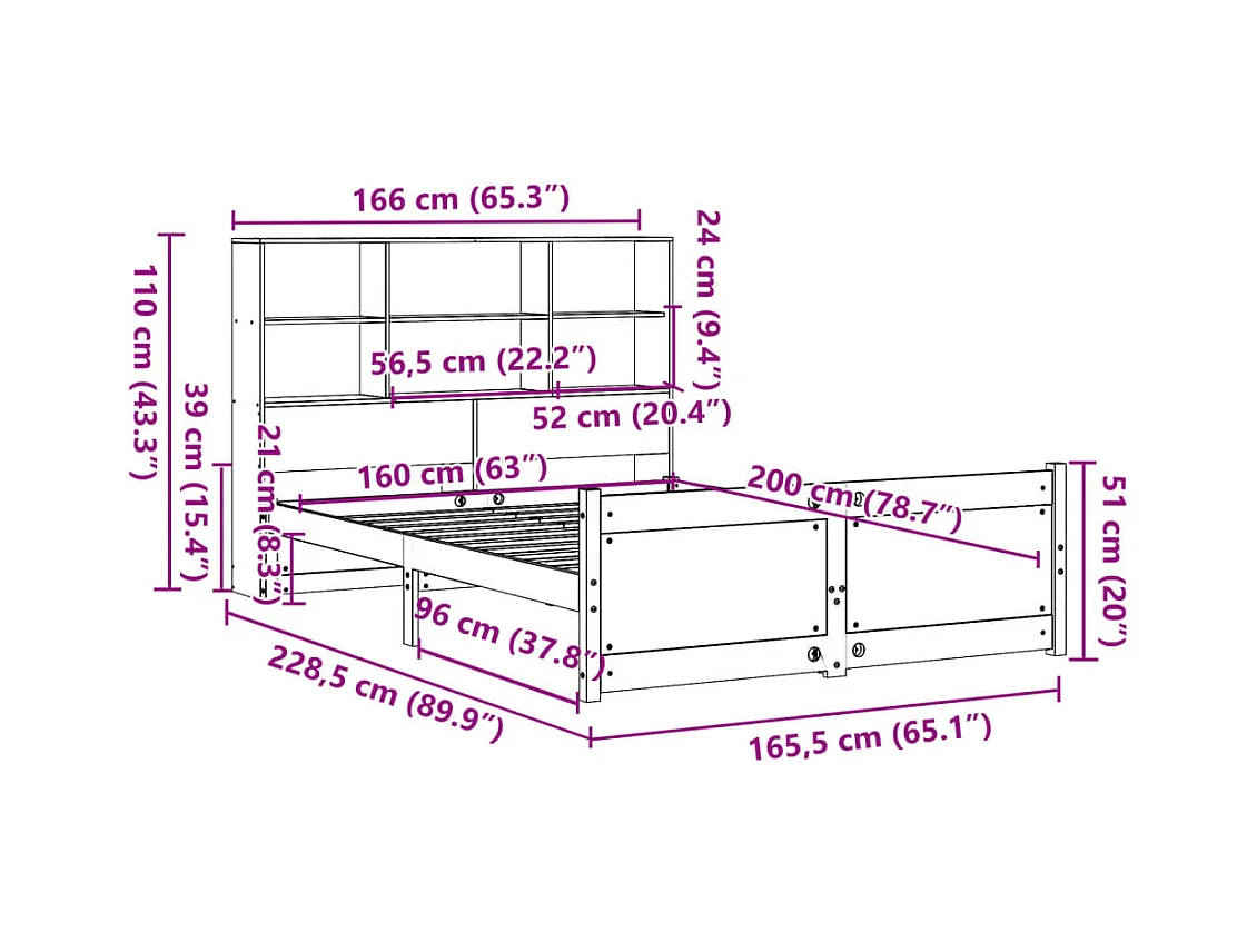 Massivholzbett mit Regal ohne Matratze 160x200 cm Massivholz