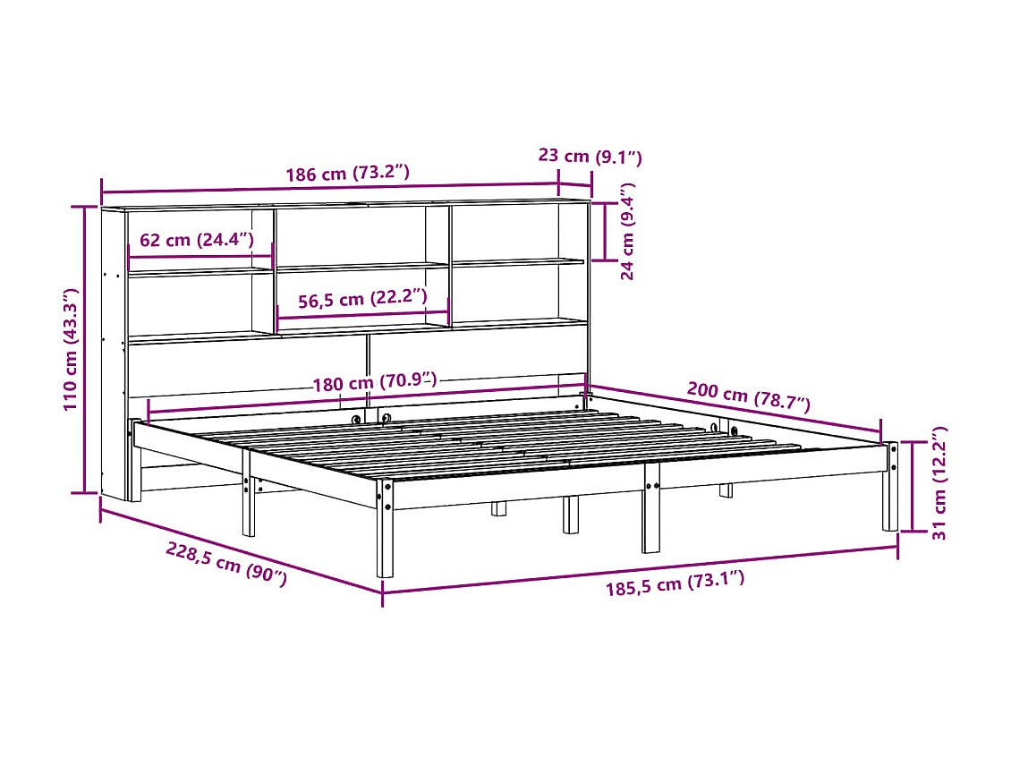 Massivholzbett mit Regal ohne Matratze 180x200 cm Kiefernholz