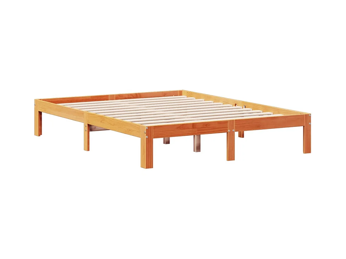 Massivholzbett mit Regal ohne Matratze Wachsbraun 135x190 cm