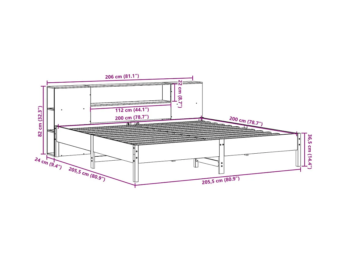 Massivholzbett mit Regal ohne Matratze Wachsbraun 200x200 cm