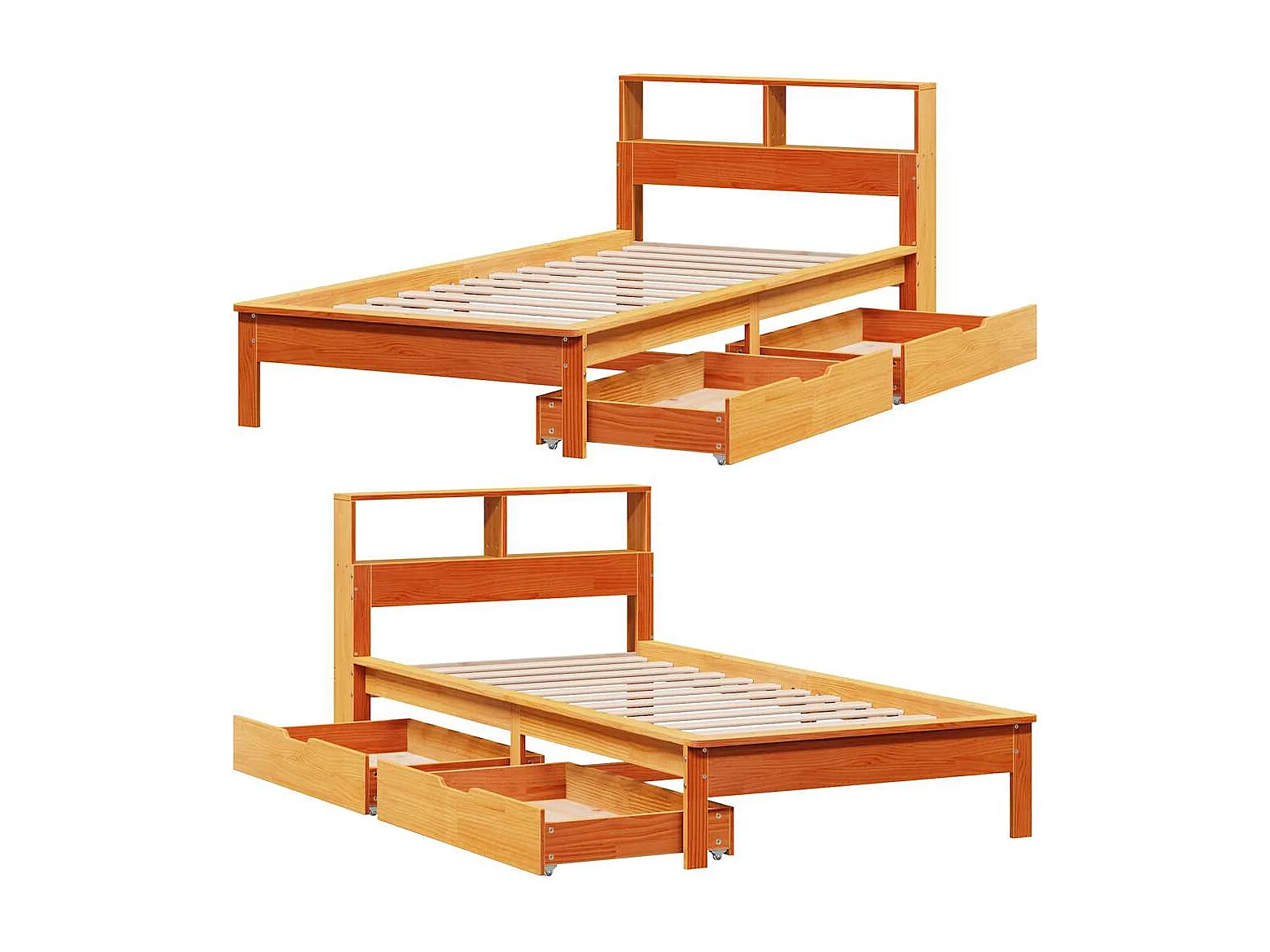 Massivholzbett mit Regal ohne Matratze Wachsbraun 75x190 cm