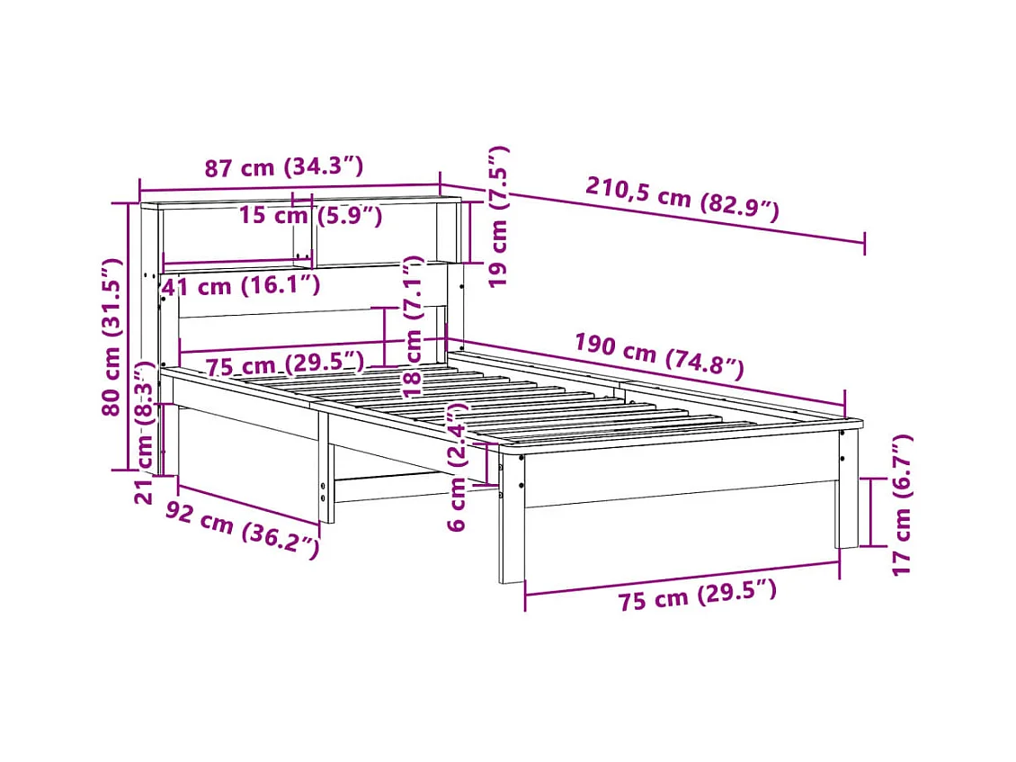 Massivholzbett mit Regal ohne Matratze Weiß 75x190 cm Kiefer