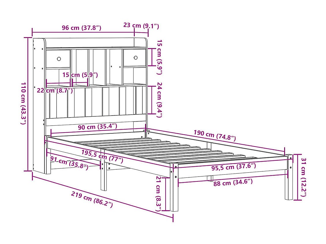 Massivholzbett mit Regal ohne Matratze Weiß 90x190 cm Kiefer