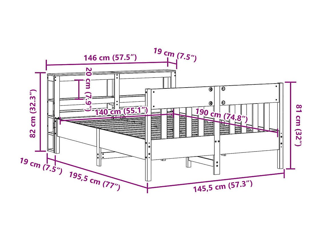 Massivholzbett ohne Matratze 140x190 cm Kiefernholz