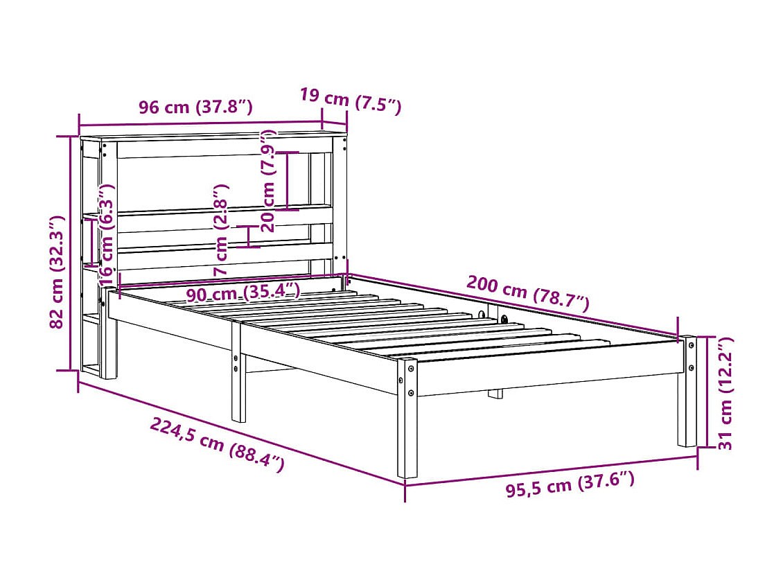 Massivholzbett ohne Matratze 90x200 Kiefernholz