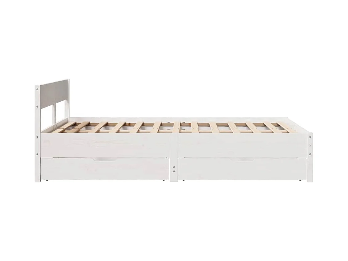 Massivholzbett mit Schubladen Weiß 150x200 cm Kiefer