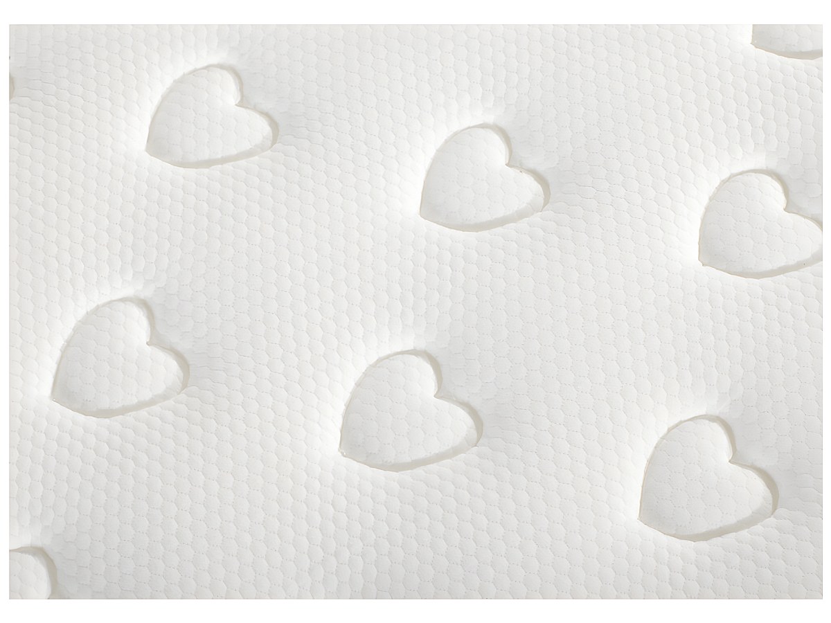 Ein Plus an Charme: Die Matratzenauflage ist mit herzförmigen Motiven bestickt, ein reizvolles Detail für Nächte zu zweit.