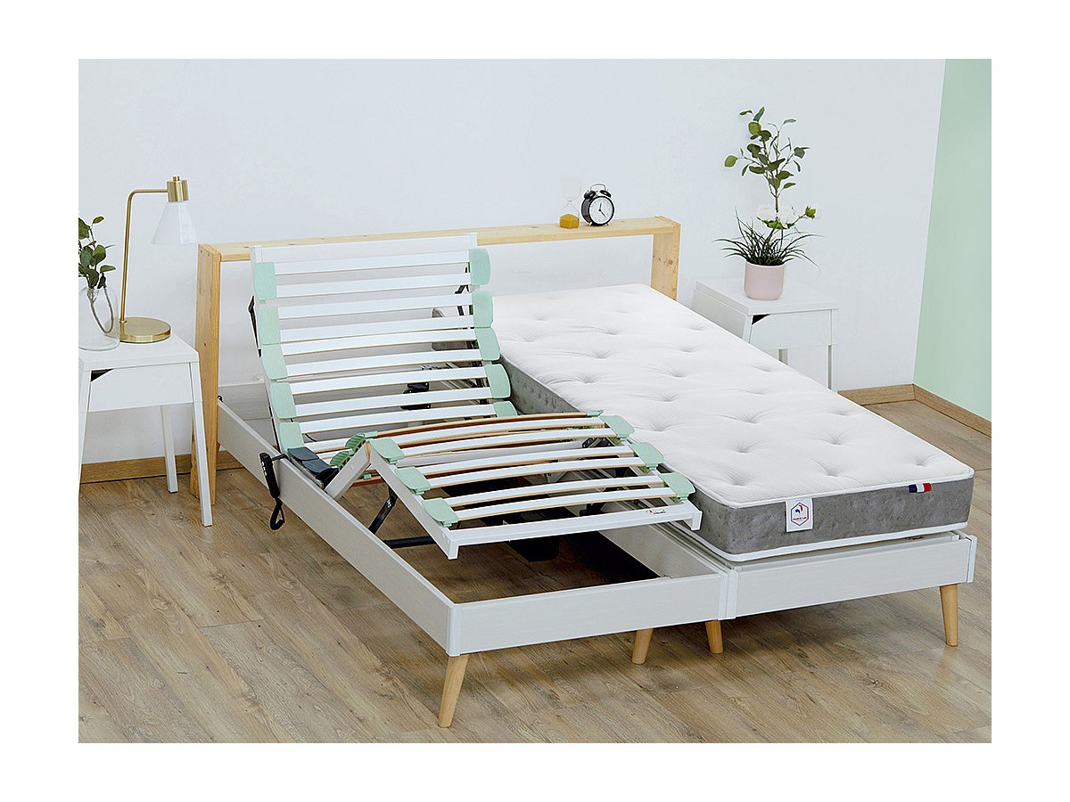 Elektrisch verstellbarer Relax-Lattenrost mit Doppelfederleisten SINDRI von DREAMEA - 5 Liegeebenen - Härtegrad über Schieberegler einstellbar - Farbe Weiß