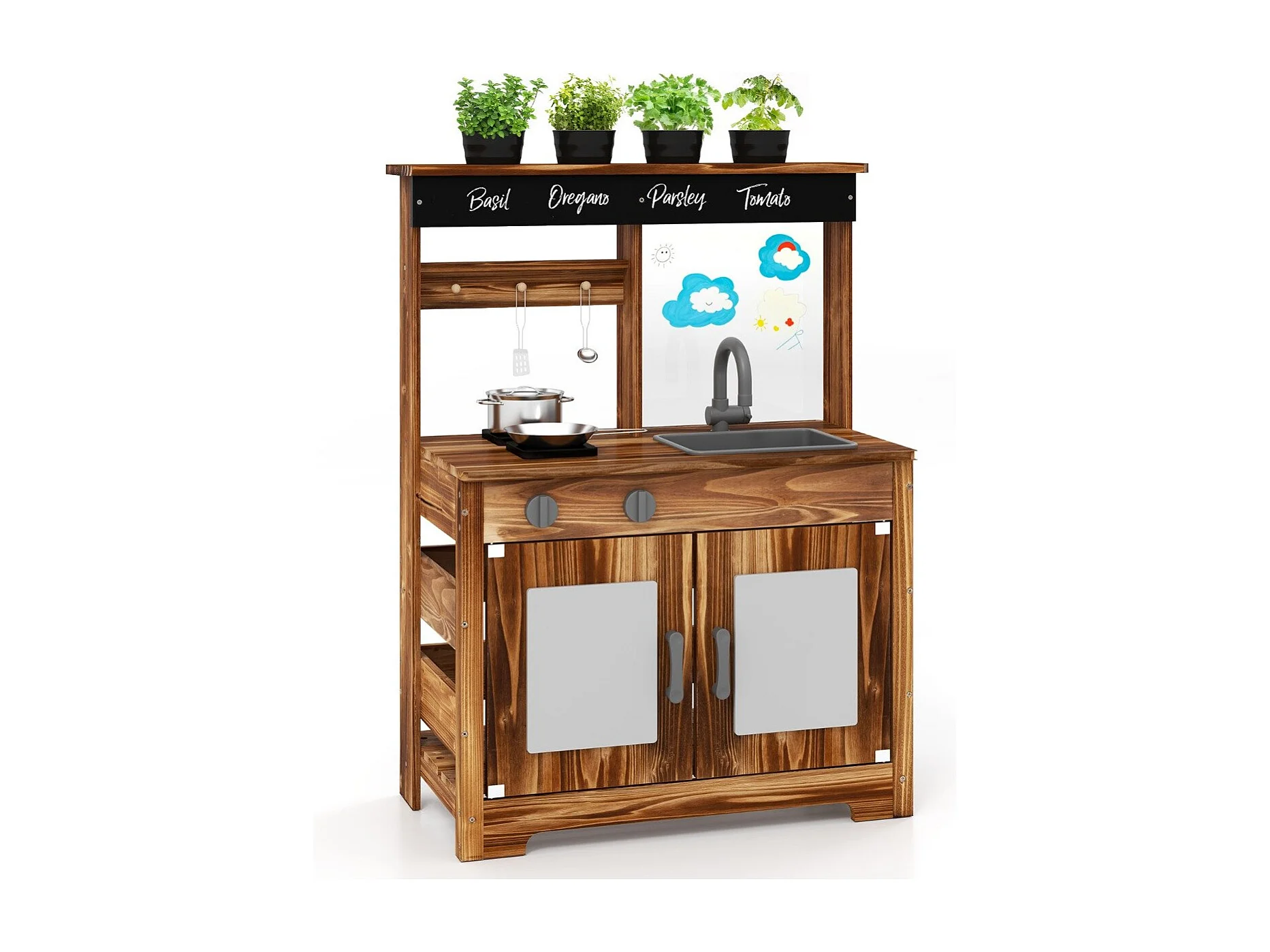 Kinder Mud Kitchen mit Pflanzentöpfen & Kochgeschirr & Herden Holz Spielküche Spielset