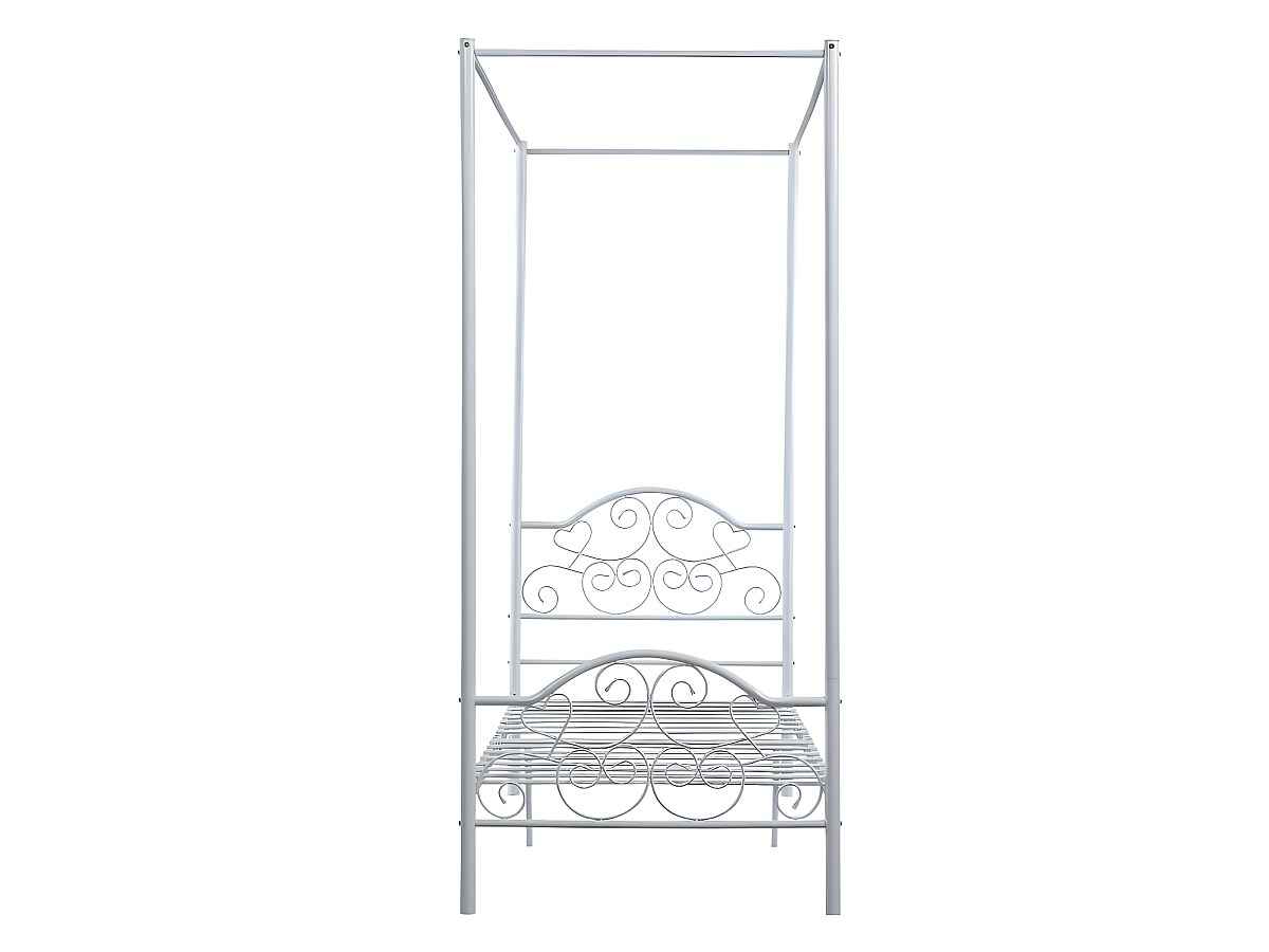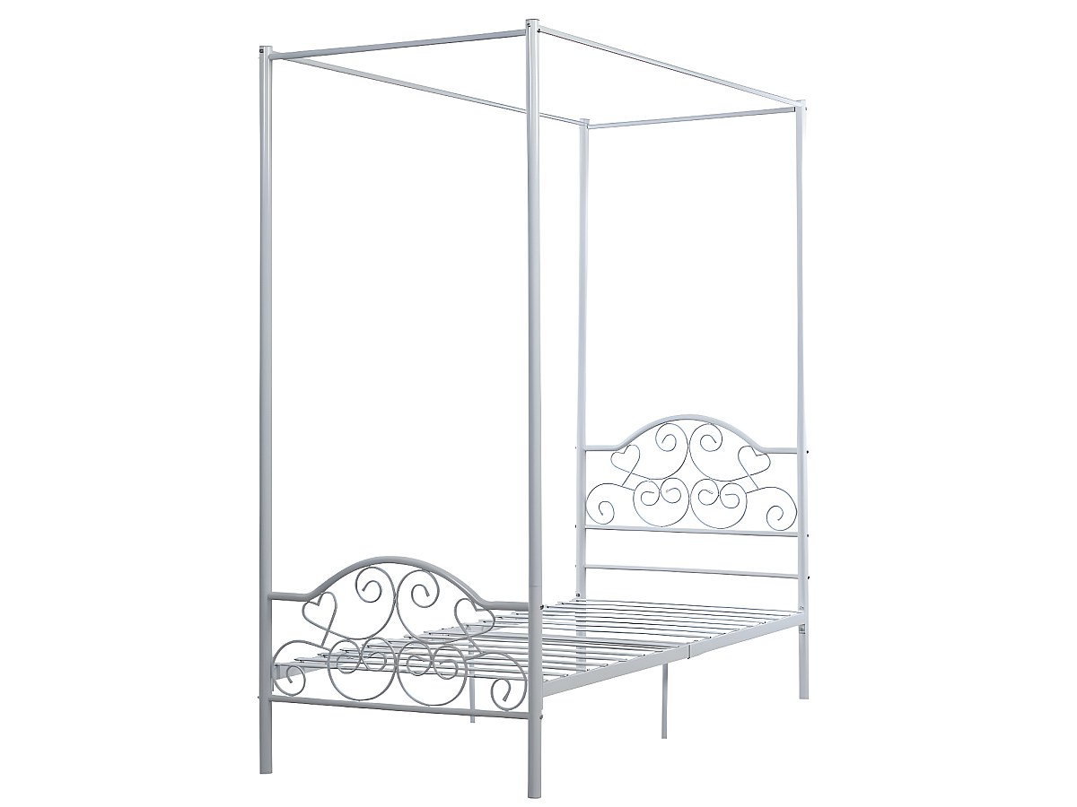 Metallbett Himmelbett LEYNA - 90 x 190 cm - Weiß + Matratze