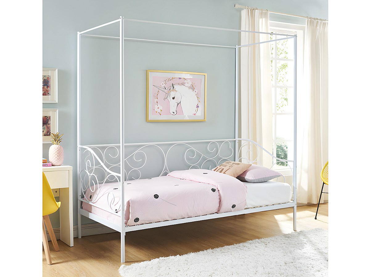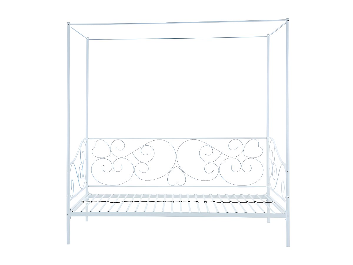 Metallbett Himmelbett VIVIAN - 90 x 200 cm - Weiß + Matratze