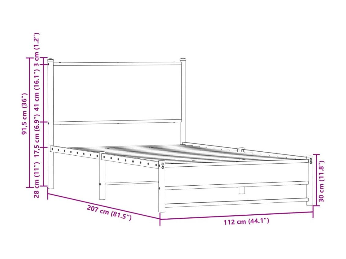 Metallbett ohne Matratze Sonoma-Eiche 107x203 cm