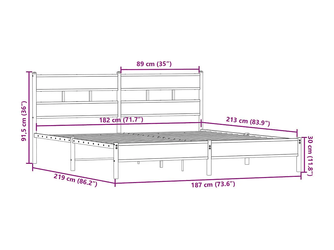 Metallbett ohne Matratze Sonoma-Eiche 183x213 cm