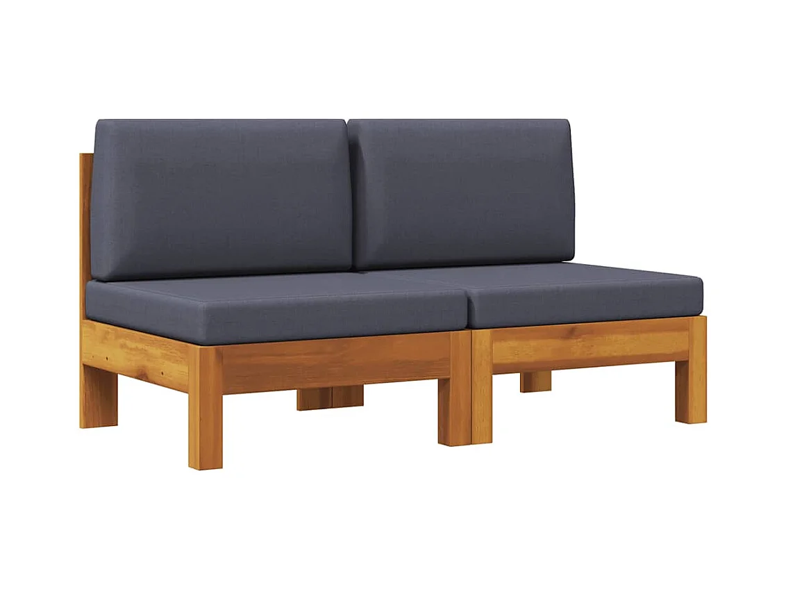 Mittelsofas 2 Stk. mit Dunkelgrauen Kissen Massivholz Akazie