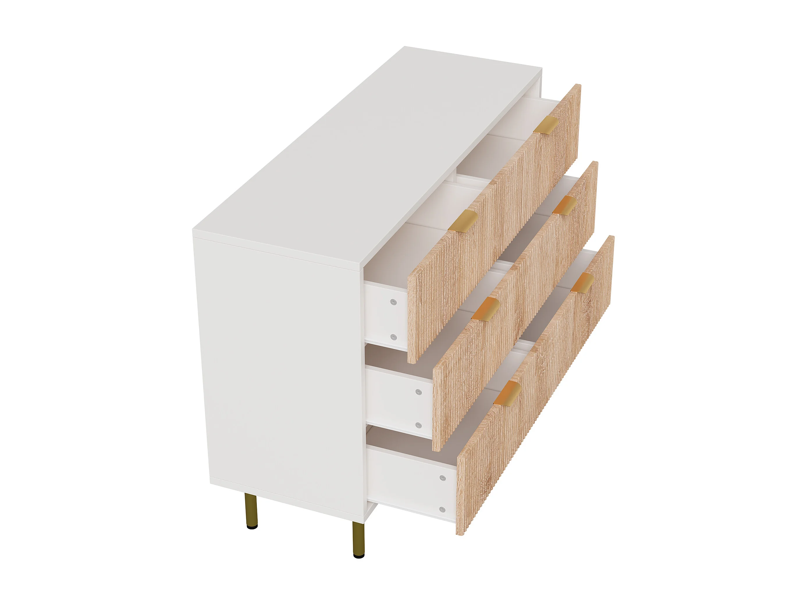 Moderne Kommode mit 6 Schubladen, breitem, geschwungenem Profil und geriffelten Rillen, TV-Möbel, für das Wohnzimmer, aus Holz