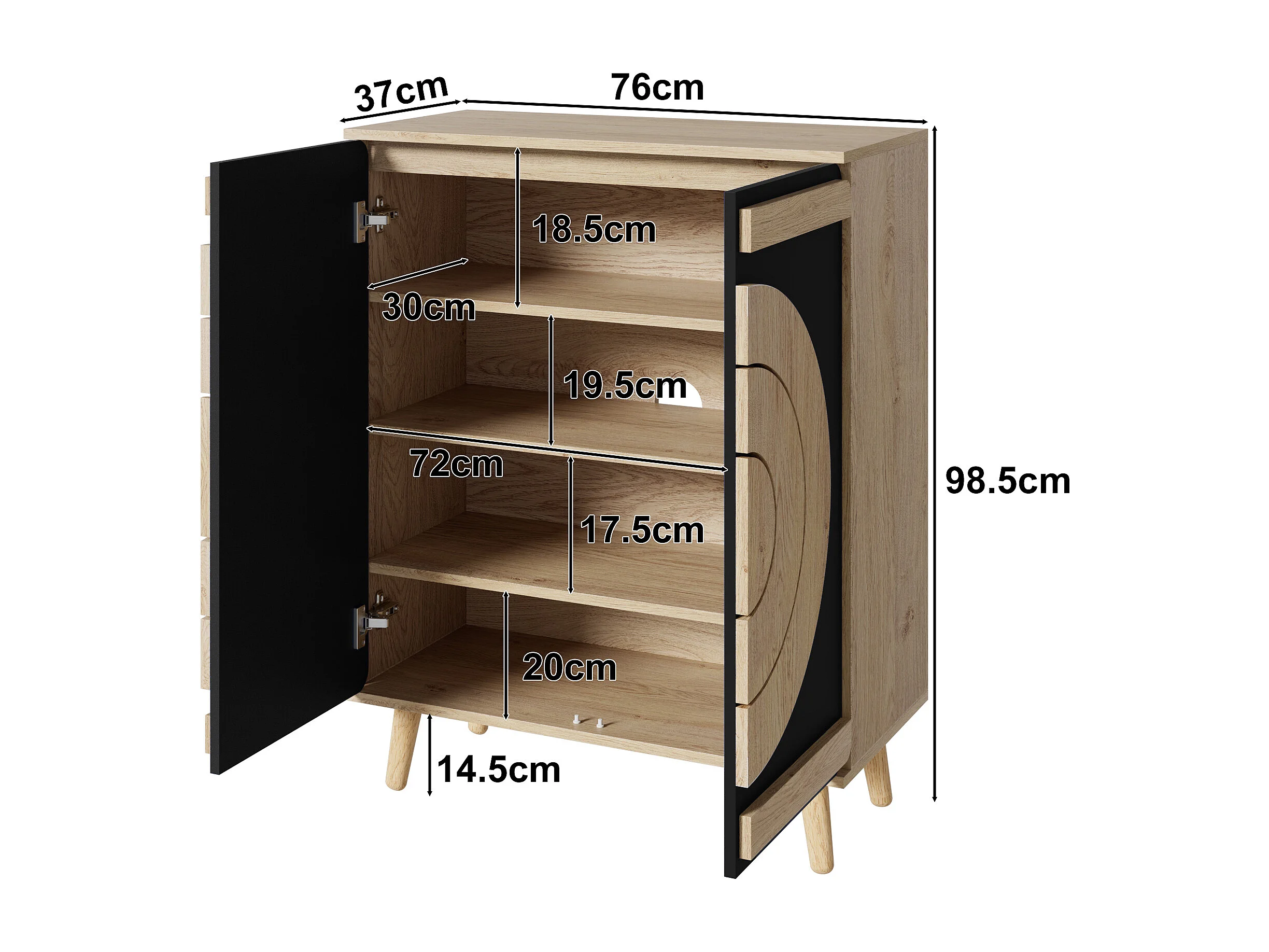 Moderner Schuhschrank mit runden, geometrischen Türen – 76 x 37 x 98,5 cm – MDF – schwarz