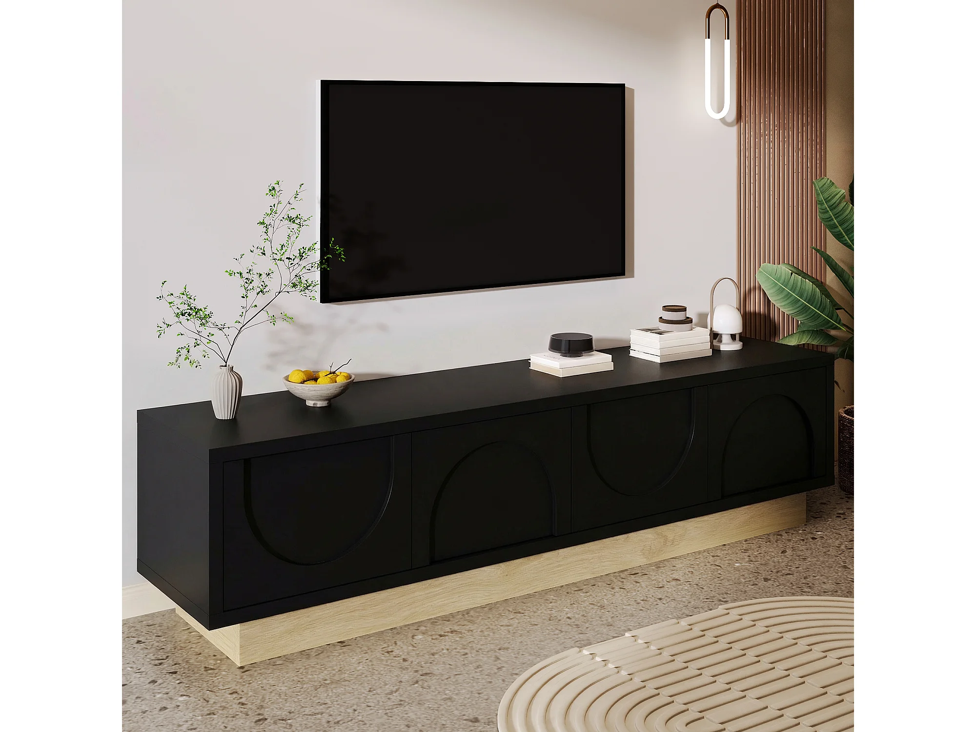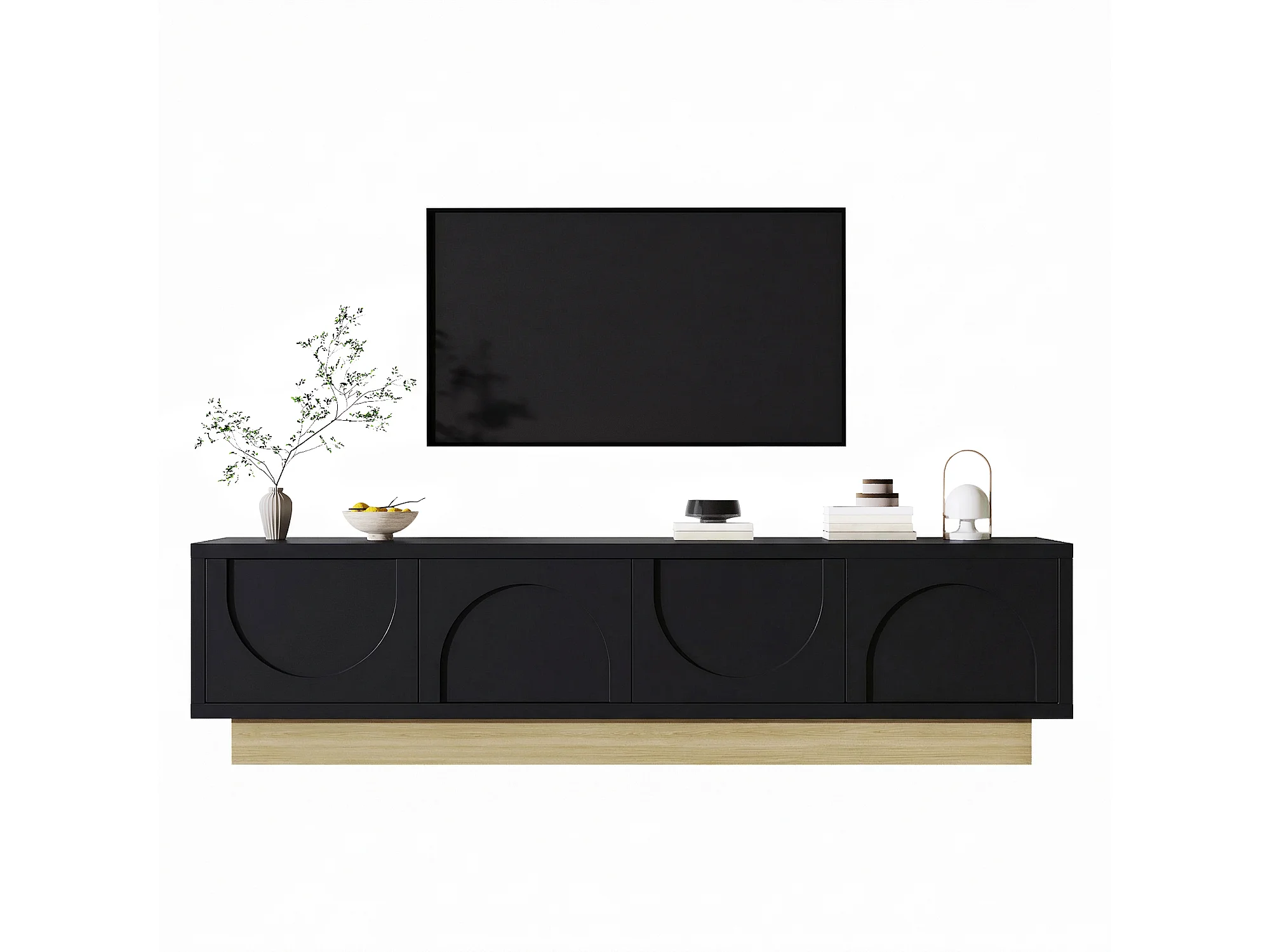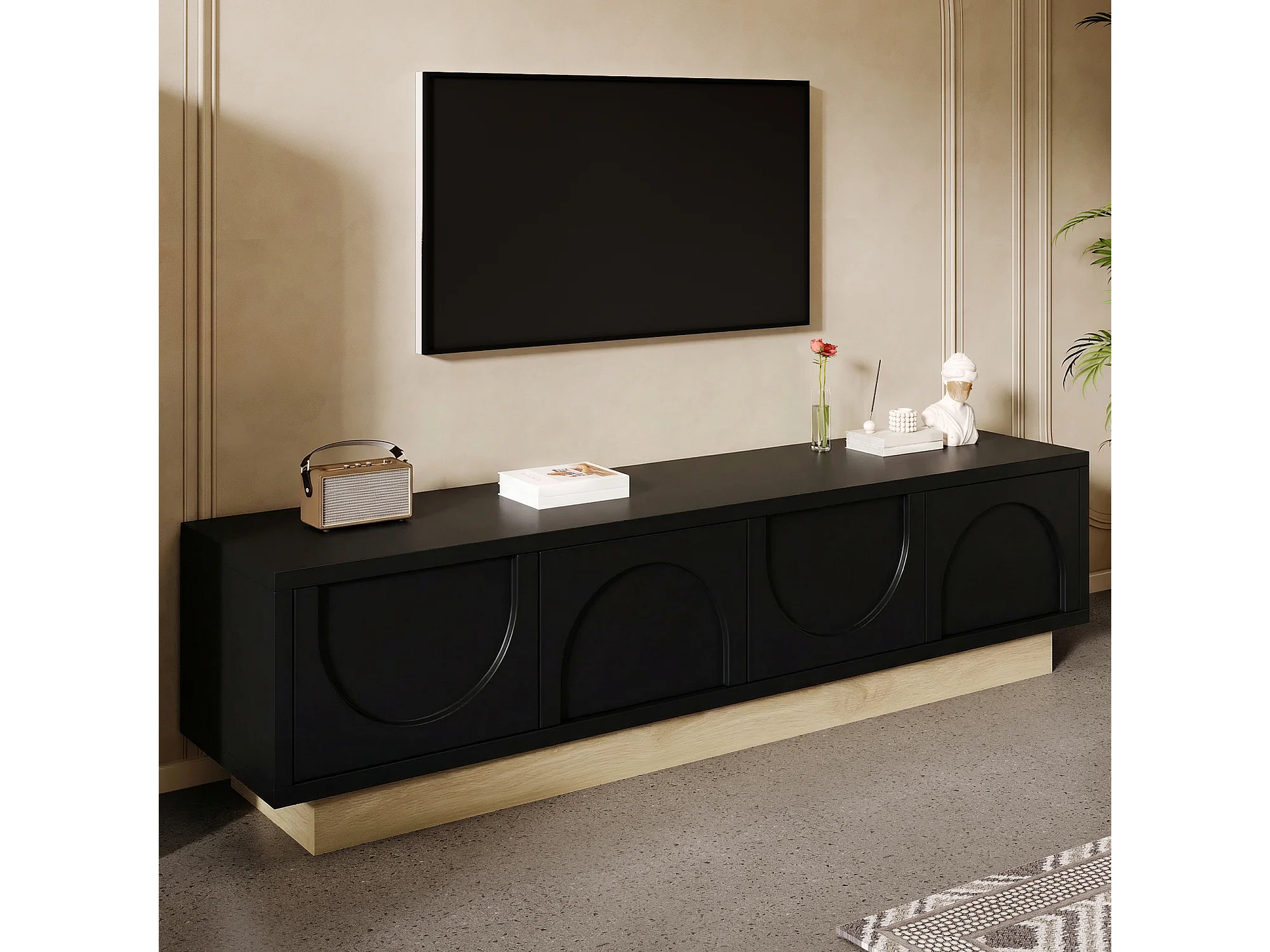 Moderner TV-Ständer in Holzoptik – 175 x 40 x 41,5 cm – mit 4 Türen – MDF – schwarz