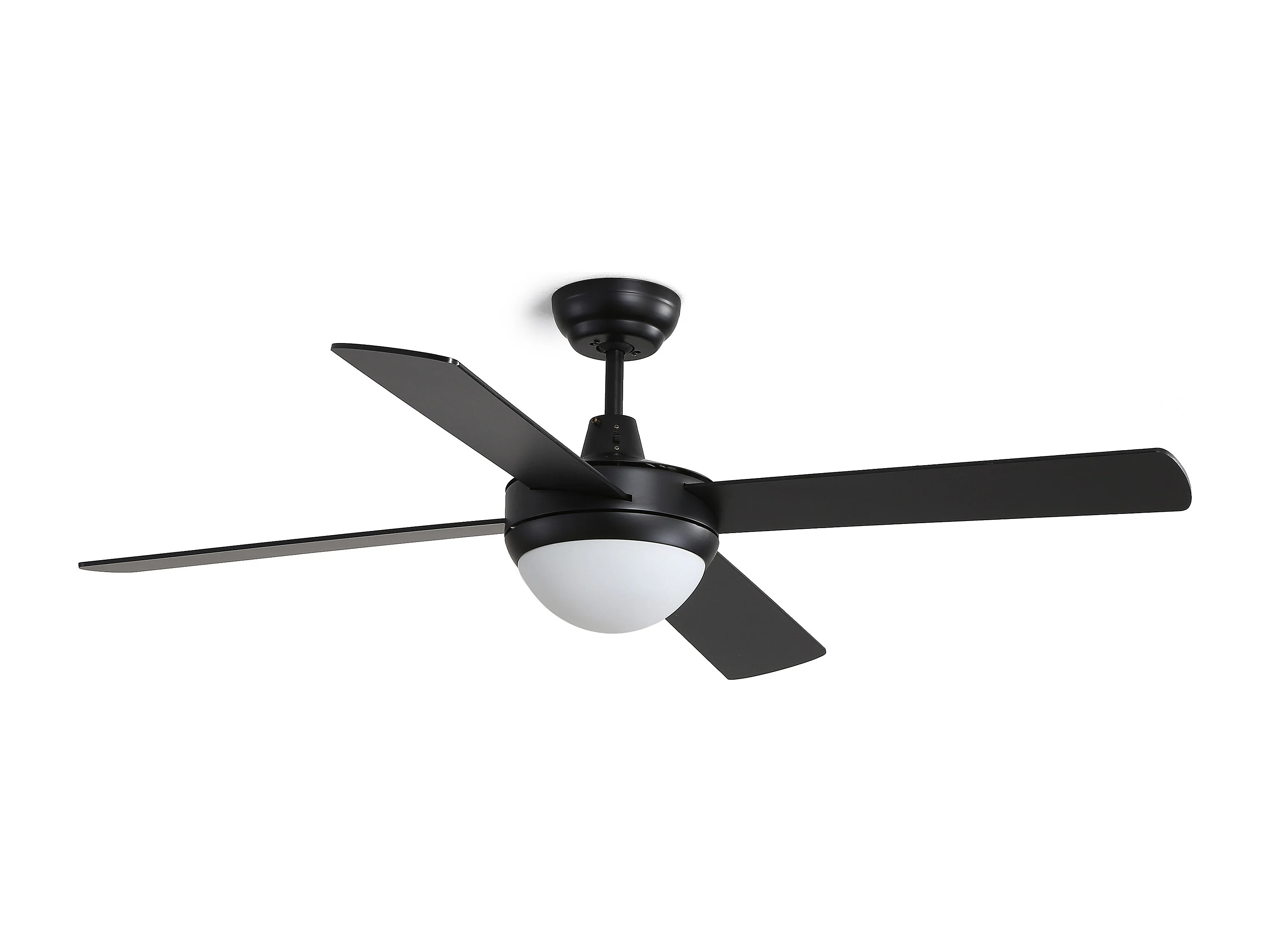 MISTRAL Deckenventilator im modernen Stil – Gleichstrommotor – 24 W SMD-LED – K Select – Fernbedienung – Licht – 3 Flügel – ø132 cm – Stahl und Holz – Schwarz